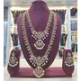 Jewel City Antique Temple Design Bridal Necklace Set with Chandbali Earrings - Pearl Embellished Gold-Plated Traditional Jewelry