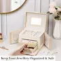 HomeFashionNecklaceJewellery Organiser MultiLayer PU Leather Portable Lockable Jewelry Box Case with Dividers Container for Rings, Earrings, Necklace Home Organizer, Beige, Onesize, Faux Leather