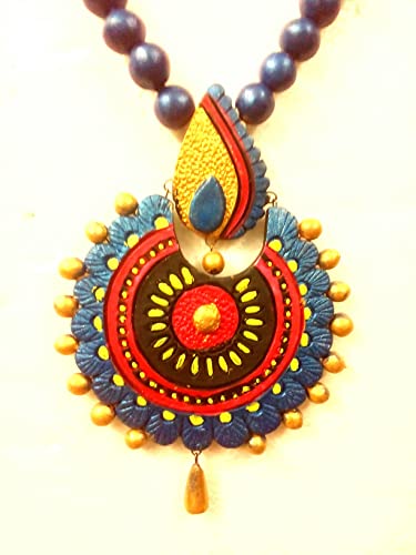 Karru Krafft Women's Handcrafted Terracotta Necklace Set Traditional Blue & Hand Painted Jewellery Set