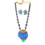 Karru Krafft Women's Handcrafted Terracotta Necklace Set Traditional Blue Hand Painted Jewellery Set
