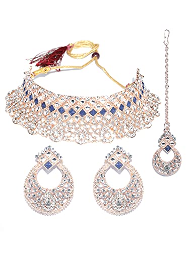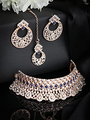 HomeFashionNecklacePriyaasi Blue Stone Jewellery Set for Women | Kundan Choker Set with Maangtikka and Earrings in Chandbali Design | Gold-Plated Traditional Jewellery Set for Women - Wedding & Festive Wear