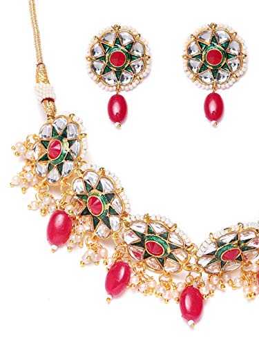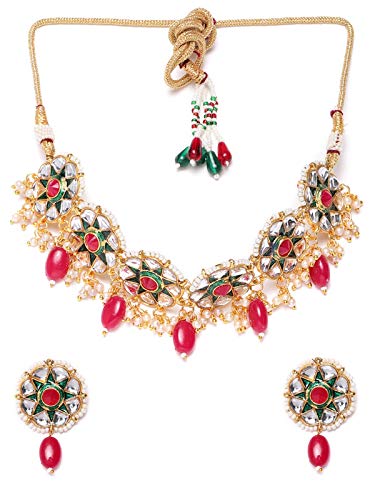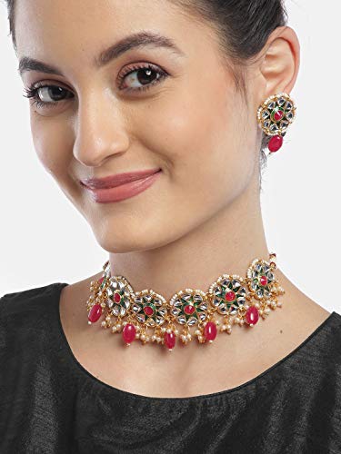 Priyaasi Gold-ColorChoker Brass Jewellery Set Necklace for Girls and Women (Ruby) (Gold Green)