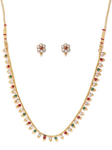 Priyaasi Gold-ColorGold Artificial Stone Jewellery Set for Women