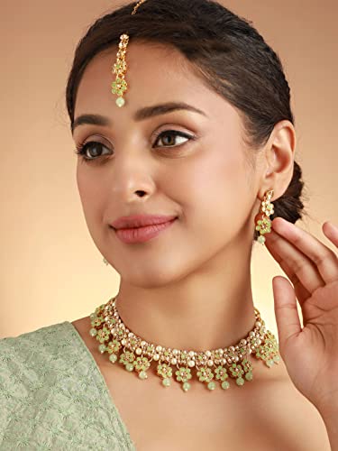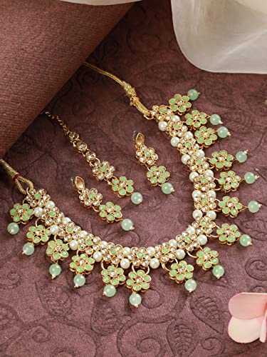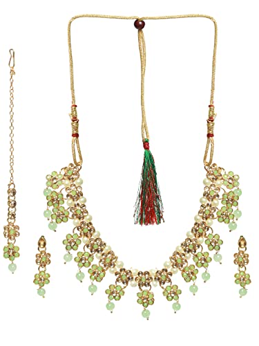 Priyaasi Green Floral Golden ColorJewellery Set with Maangtikka