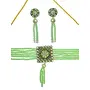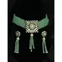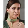 Priyaasi Green Studded Floral Mirror Block Choker Jewellery Set