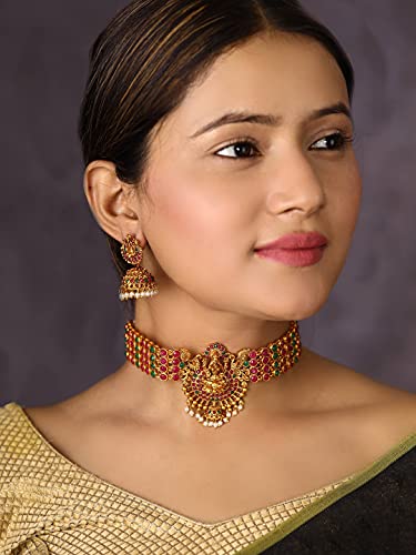 Priyaasi Multi-Color Stones Beads Golden ColorTemple Choker
