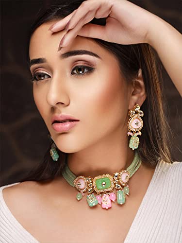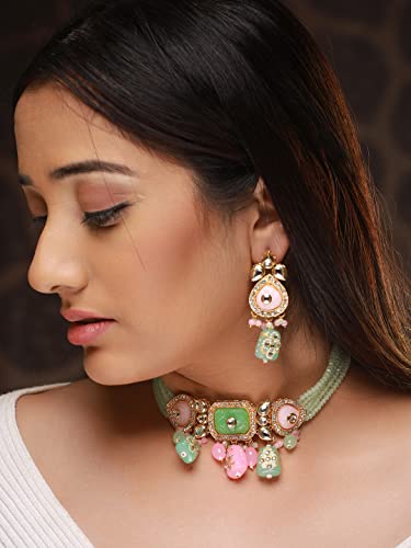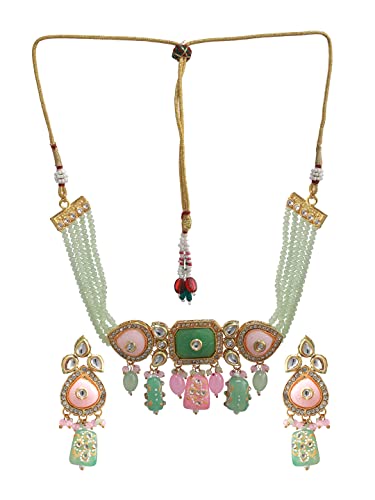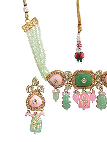 Priyaasi Multicolor Pastel-Toned Kundan Gold-ColorChoker Jewellery Set