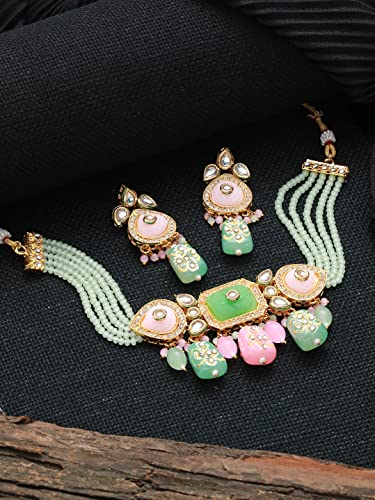 Design & Style: This set has a multilayer choker design graced by stones and beads of pretty pastel tones.