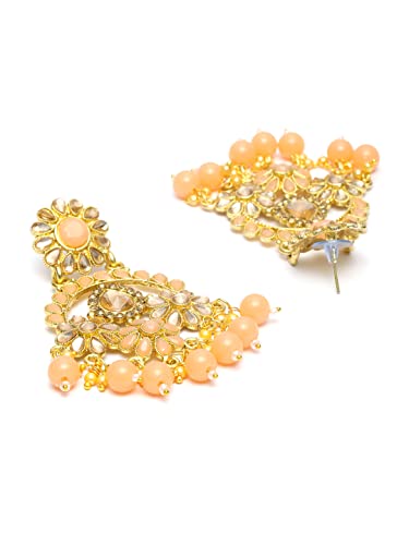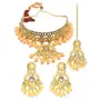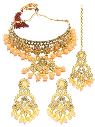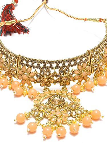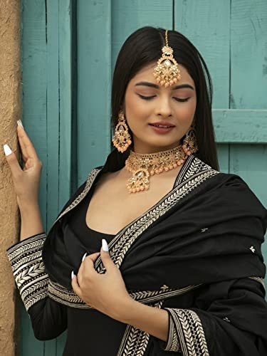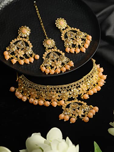 Priyaasi Peach Kundan Golden ColorFloral Choker Set with MaangTikka