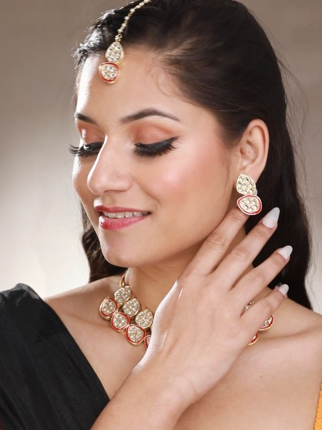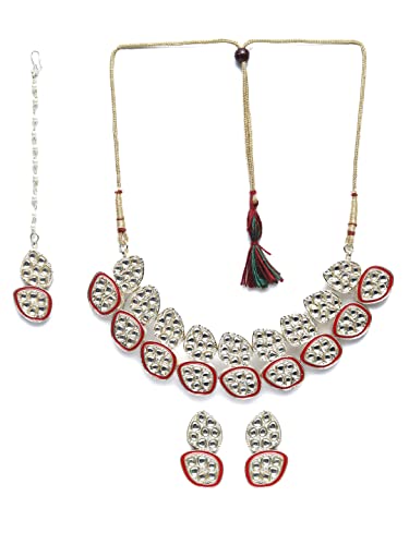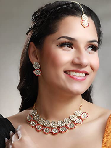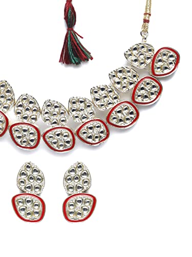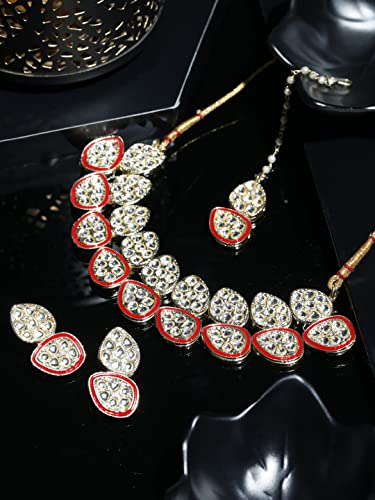 Priyaasi Red Kundan Golden ColorFloral Choker Set