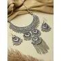 "Component: 1 oxidised silver necklace and a pair of matching earrings; Dimensions: 46×12 7×3.5 cm Disclaimer: Product color may slightly vary from the picture."
