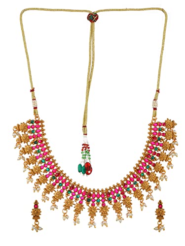 Material: This gold-plated set is simply stunning. The necklace can be secured with a drawstring closure.