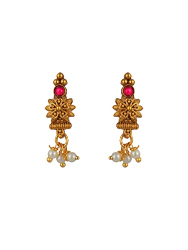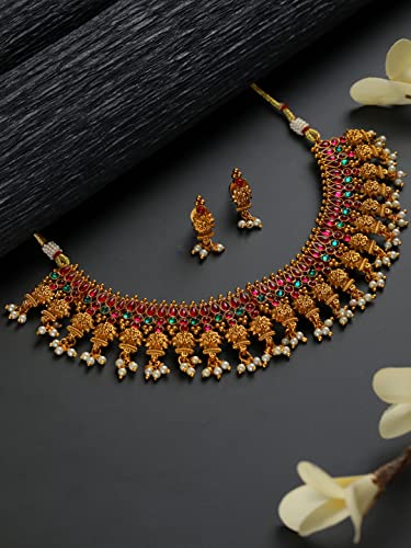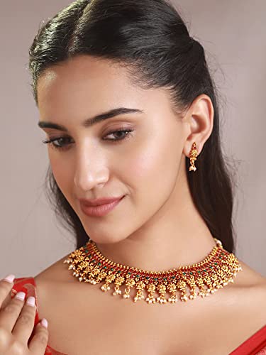 Priyaasi Traditional Floral Kemp Stone Gold-ColorJewellery Set