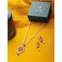 HomeFashionNecklacePriyaasi White & Red Layered Studded Ruby Stone Jewellery Set for Women | Leaf-Inspired Design | Chain of Pearls | Jewellery Set for Women - Wedding Festivals Party and Functions