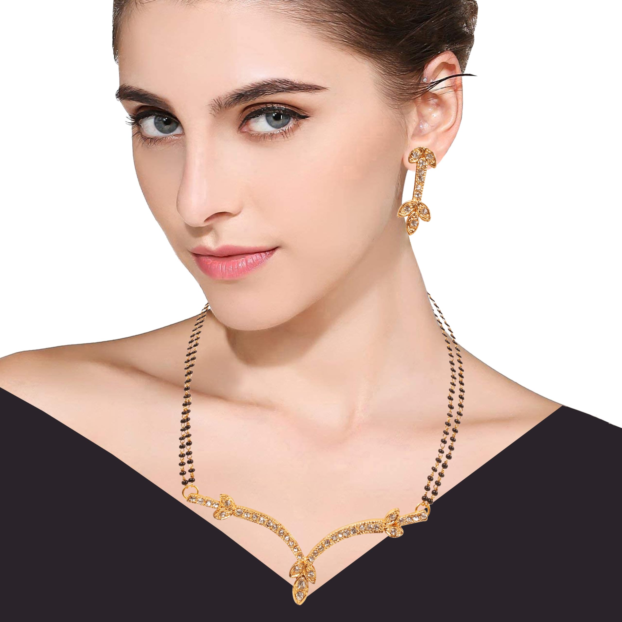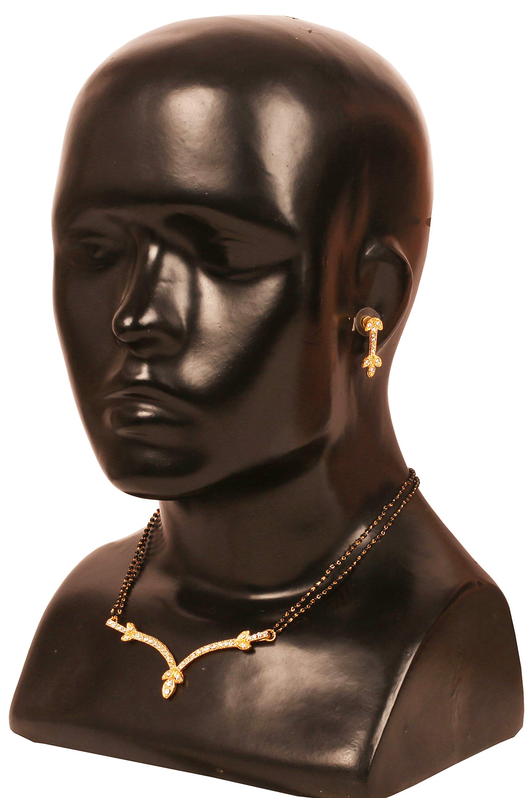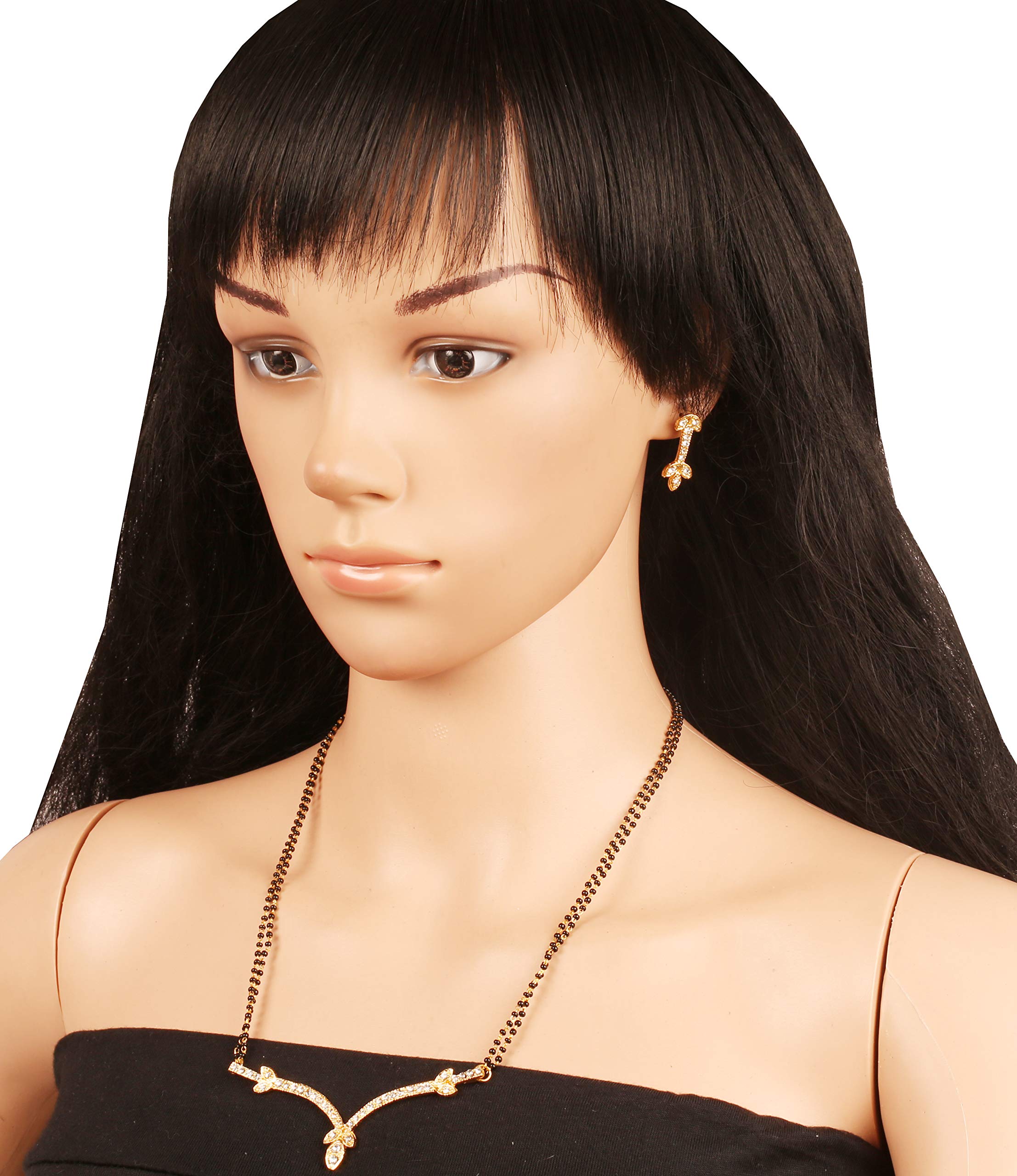Touchstone Gold Plated Indian Bollywood Trendy Rhinestones Studded Black Beads String Mangalsutra Set Designer Jewelry for Women