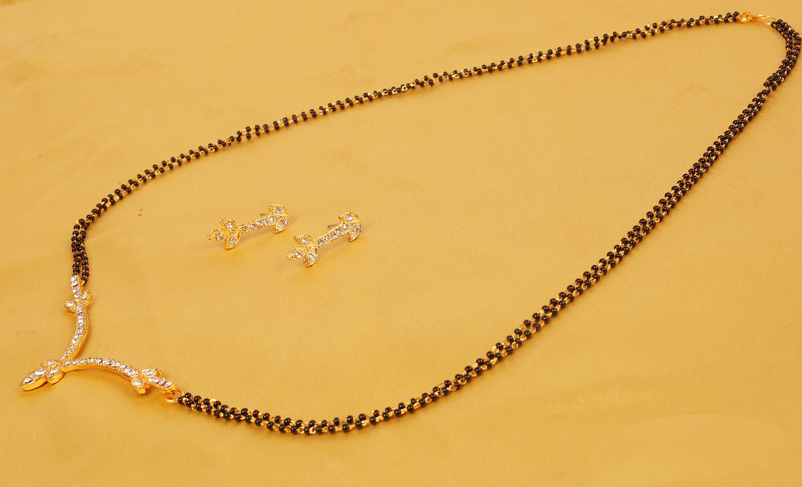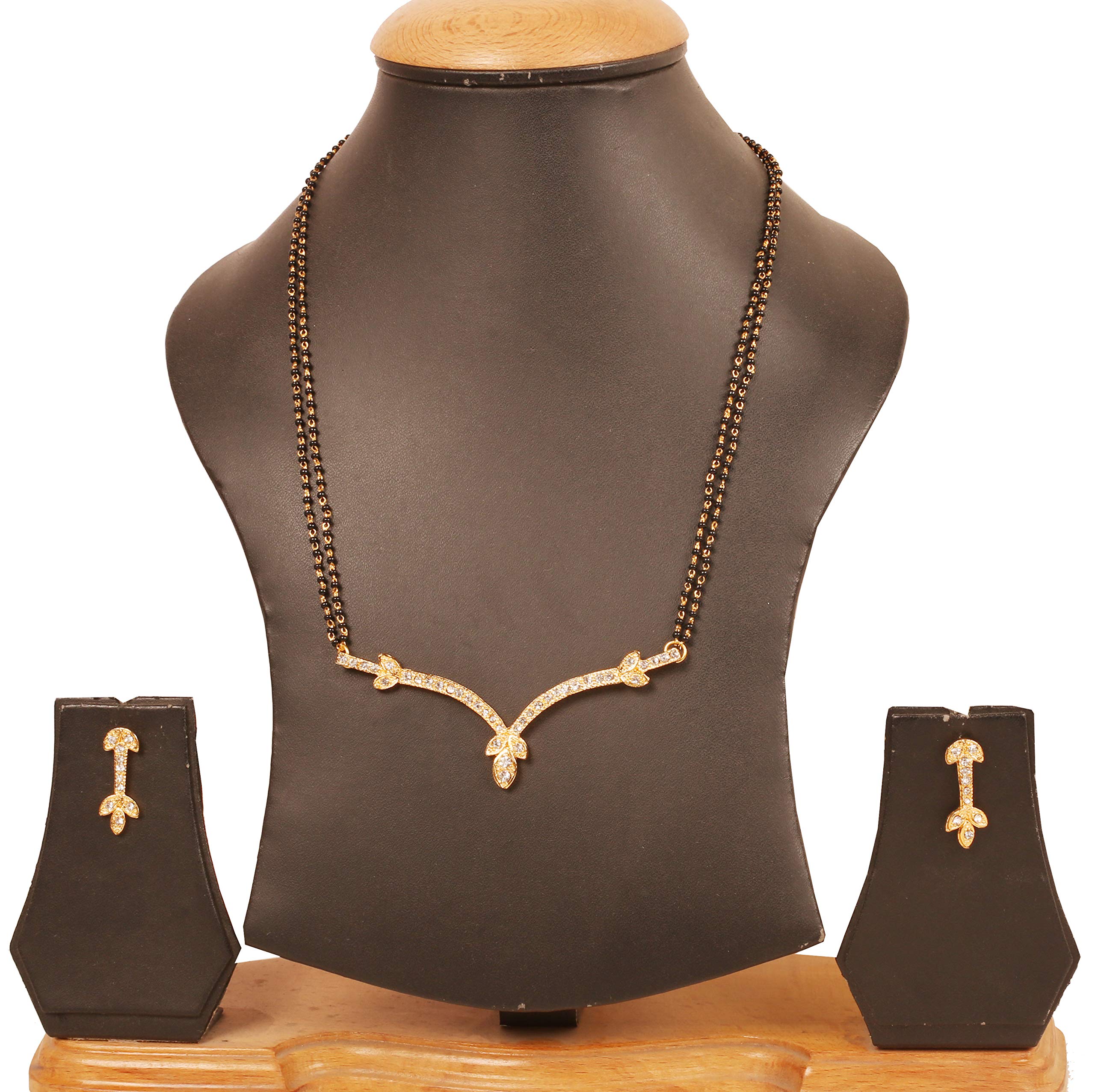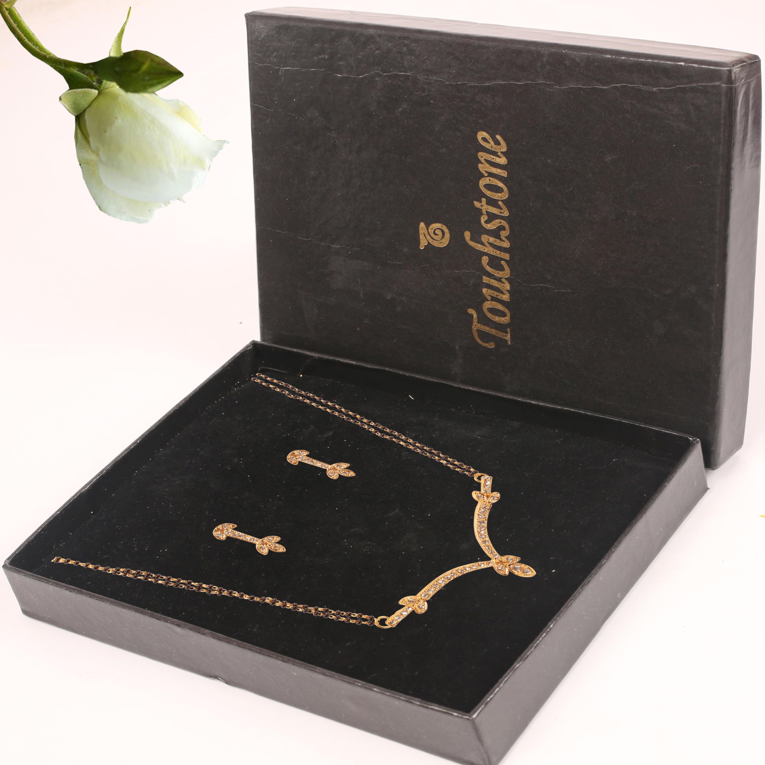 Touchstone Gold Plated Indian Bollywood Trendy Rhinestones Studded Black Beads String Mangalsutra Set Designer Jewelry for Women