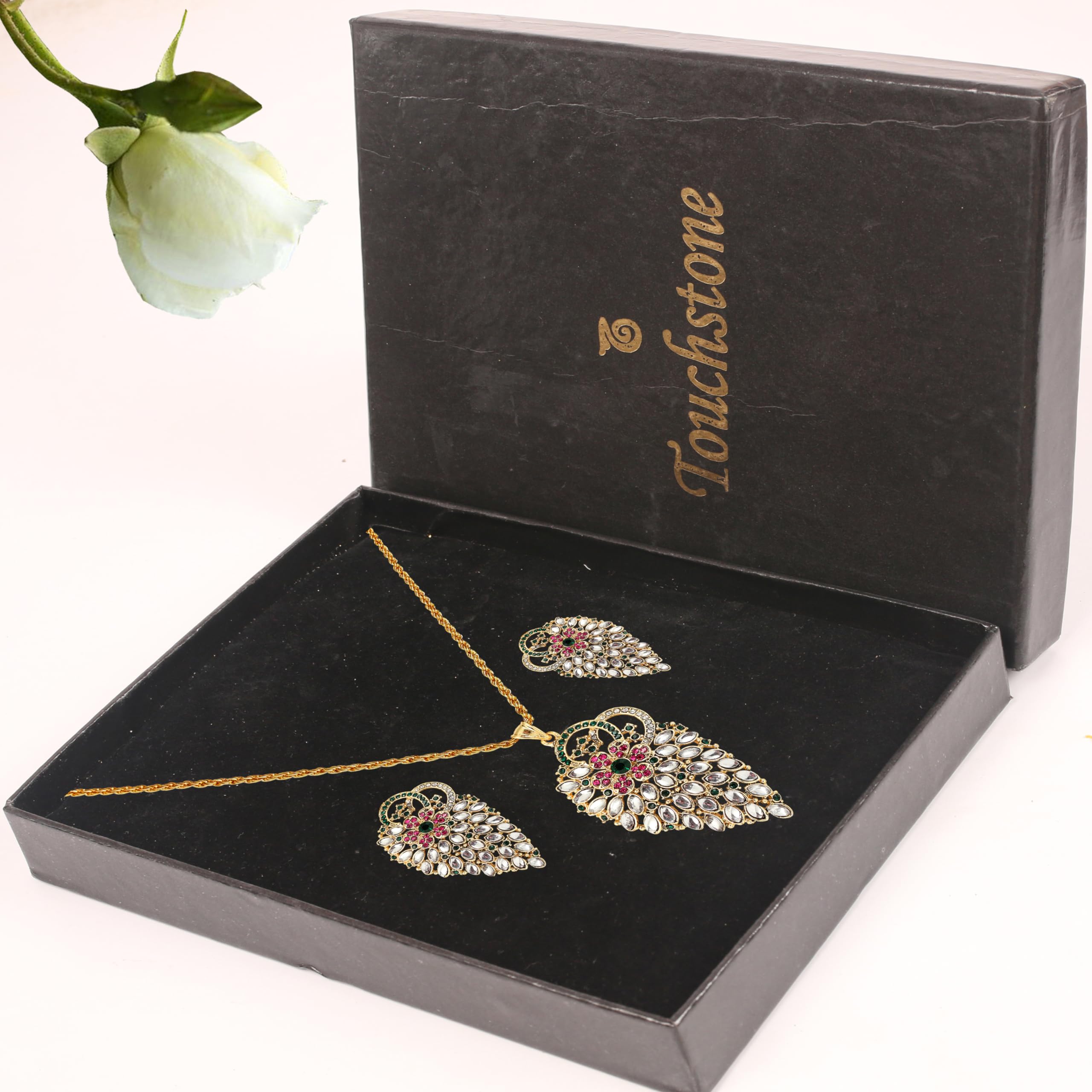 Touchstone Gold Tone Kundan Look Red Strawberry Shaped Jewelry Pendant for Women