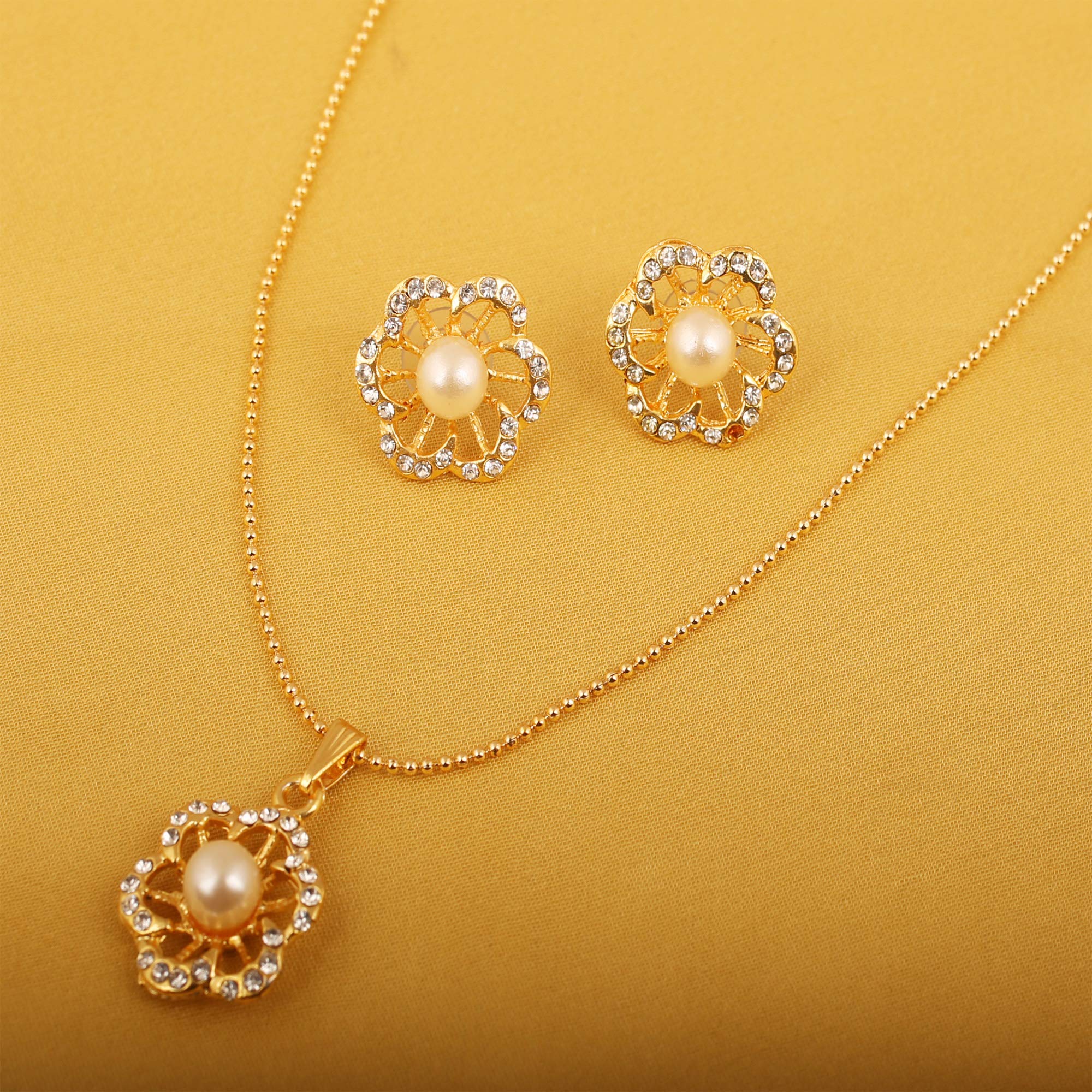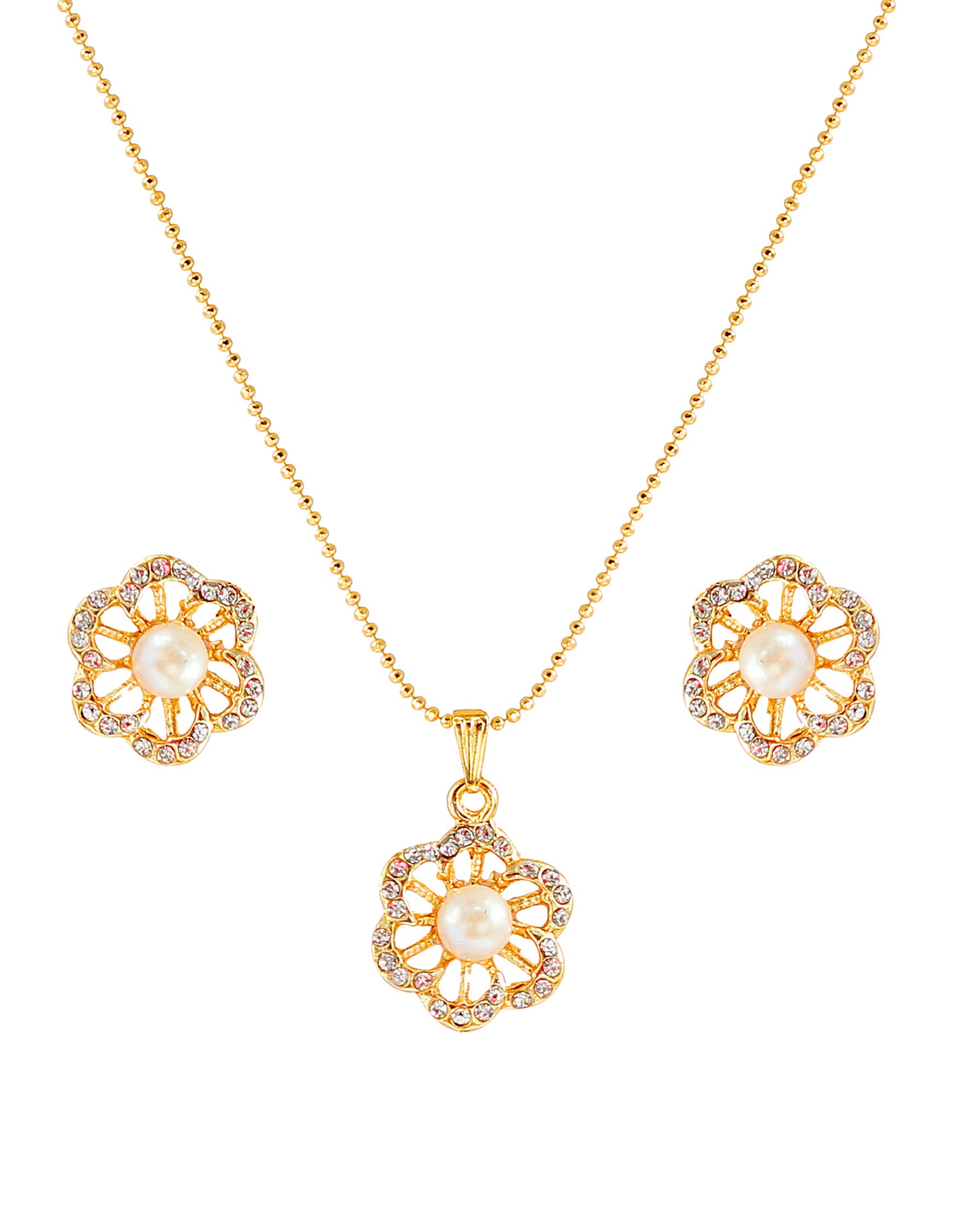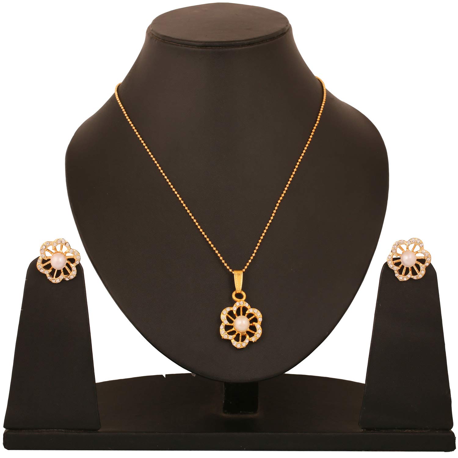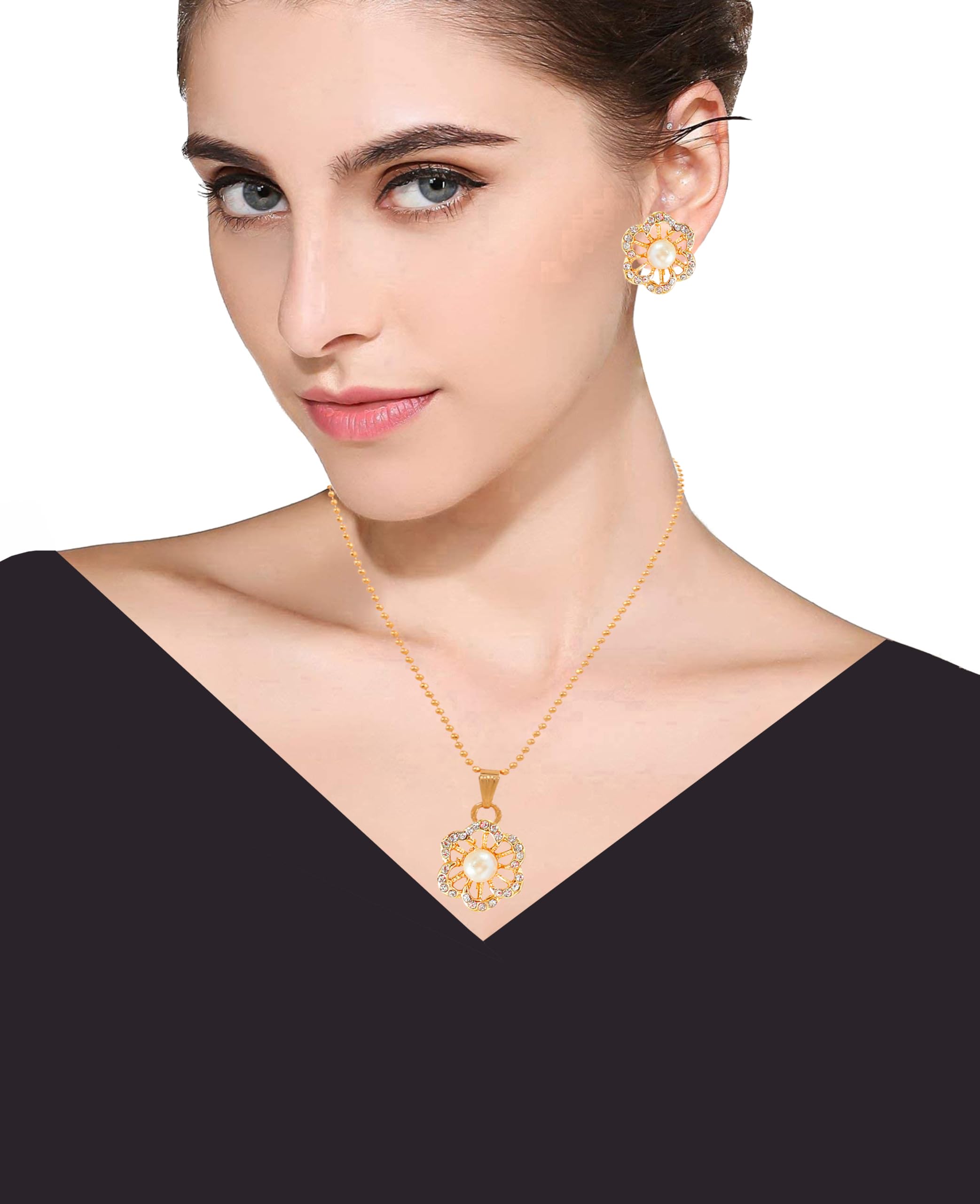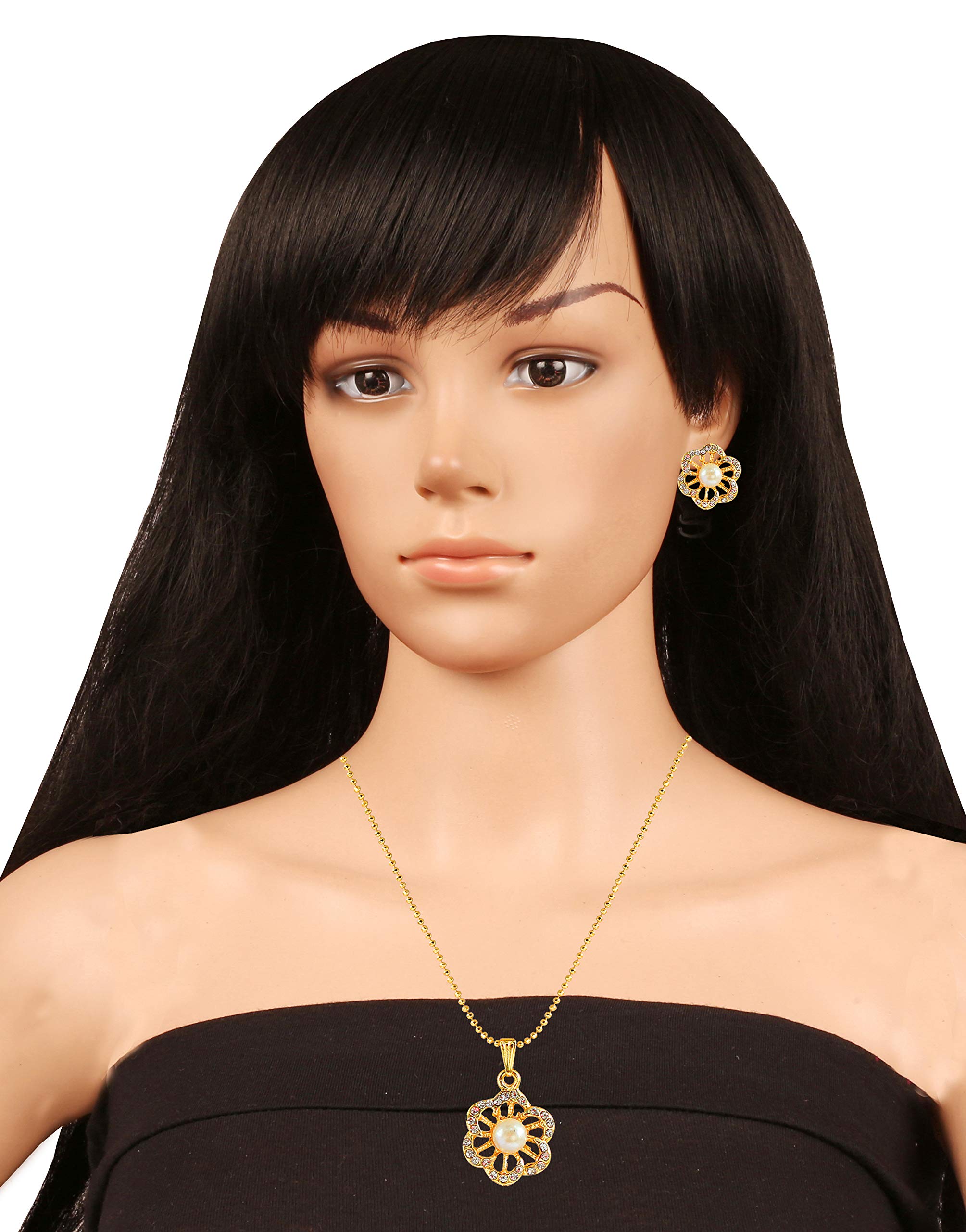 Touchstone Indian Bollywood Gold Plated Graceful Faux Pearls Dainty Pendant Sets Designer Jewellery for Women