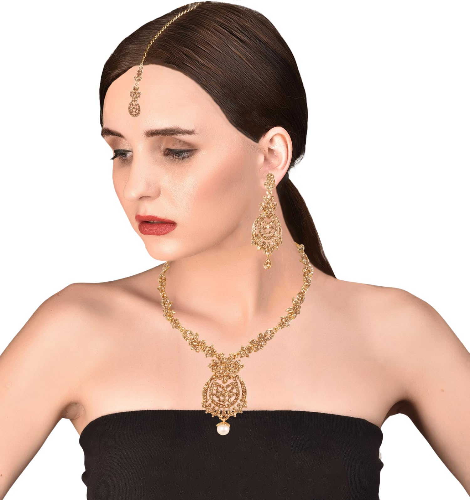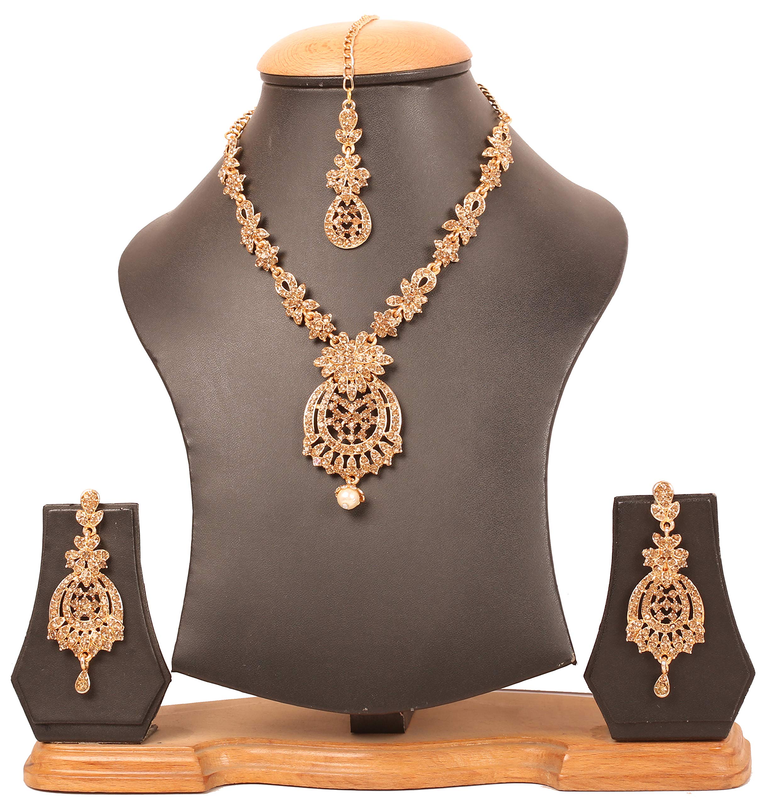 HomeFashionNecklaceTouchstone NEW Indian Bollywood Awesome Fine Workmanship Stylish Studded Diamond Look Yellow Faux Citrine Rhinestone Designer Jewelry Necklace Set In Antique Gold Tone For Women.