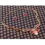 Touchstone Traditional Petals White Rhinestone Faux Ruby Designer Jewellery Necklace Set in Gold Tone for Women