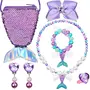 HomeFashionNecklaceVenzina® Mermaid Kids Jewelry Set Cute Pearl Necklace Bracelet Set for Girls Included Sling Bag Hair Bow Ring Earrings Mermaid Princess Jewelry Kit for Theme Party Dress Up Christmas Gift