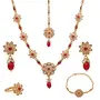 Women Jewellery Sets Gold Plated Bridal Necklace Set With Earrings and MaangTikka Ring For Wedding Jewellery