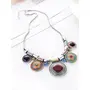 Women's Latest Fashion Plated Multicolour Circle Design Charm Locket Choker Necklace, Multicolour, Silver, Multicolour Medium
