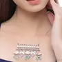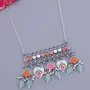 Women's Oxidised Brass Floral Motifs Pastel Multicolor Long Necklace Chain(Free Size)(Silver)