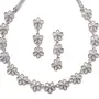 Women's Oxidised Silver-Plated Flower Shaped American Diamond Studded Necklace Earrings Jewellery Set