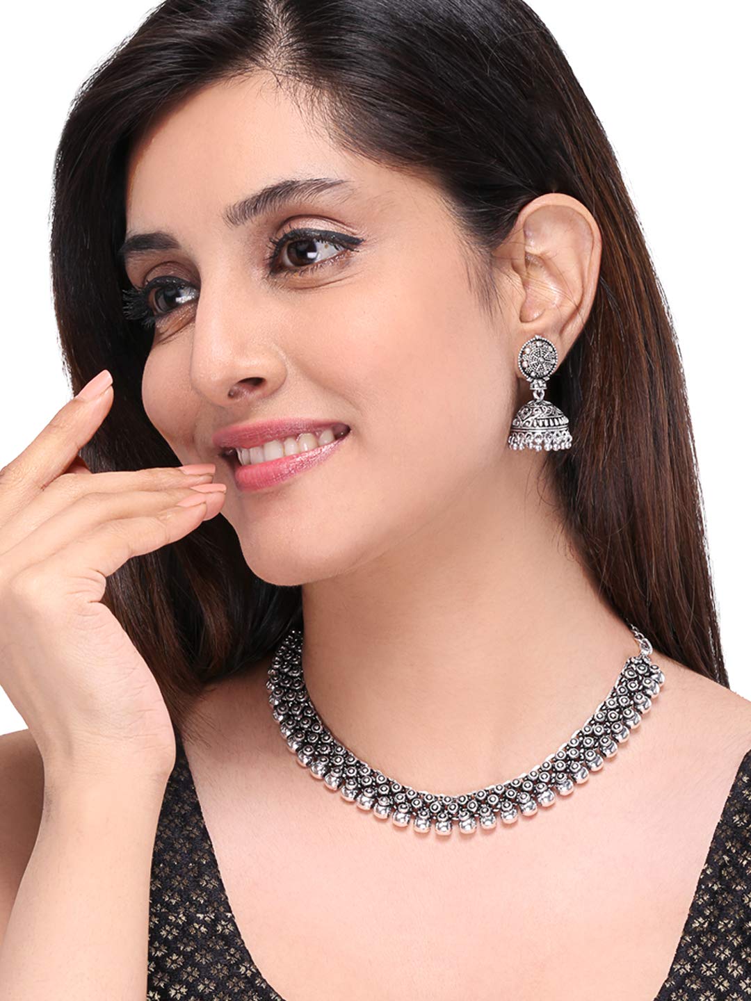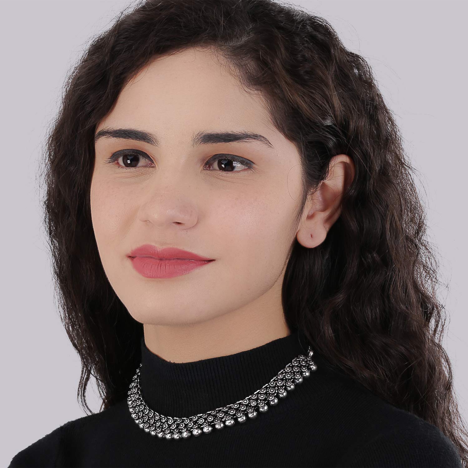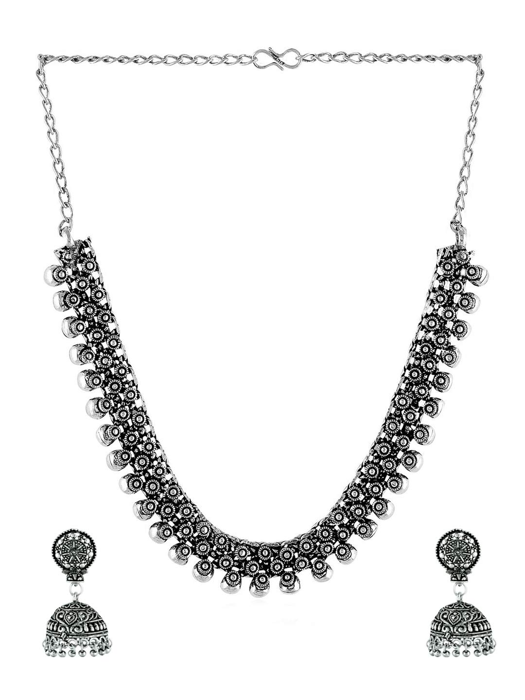 Yellow Chimes Traditional Silver Oxidised Kohlapuri Jewellery Choker Necklace Set for Women