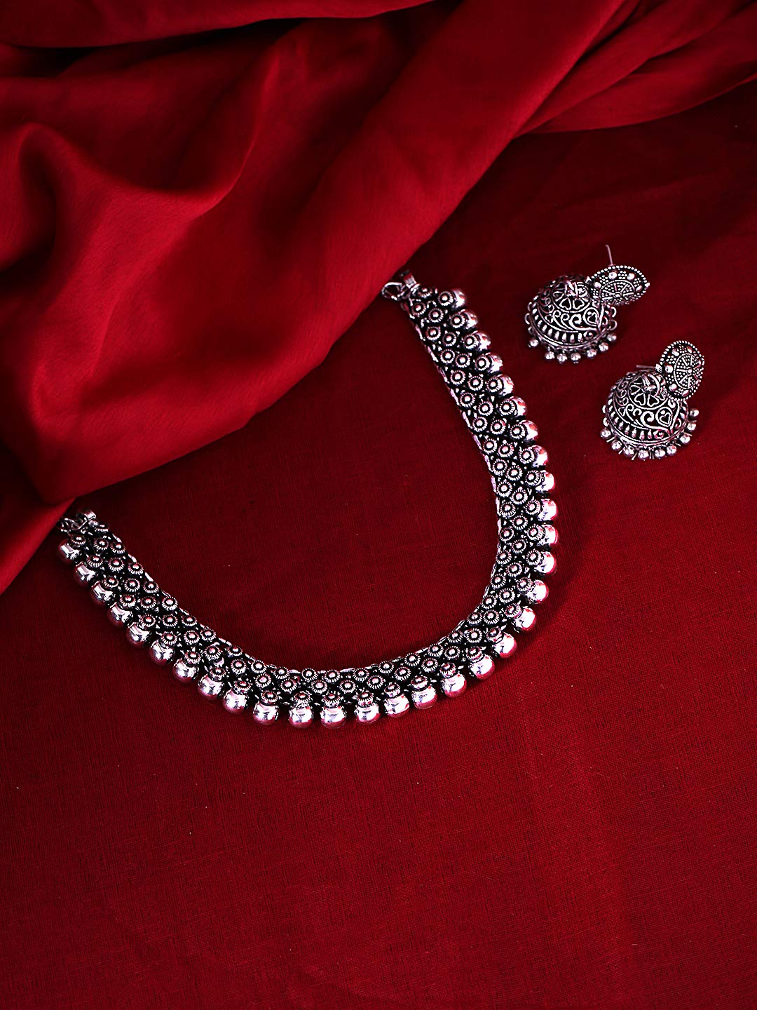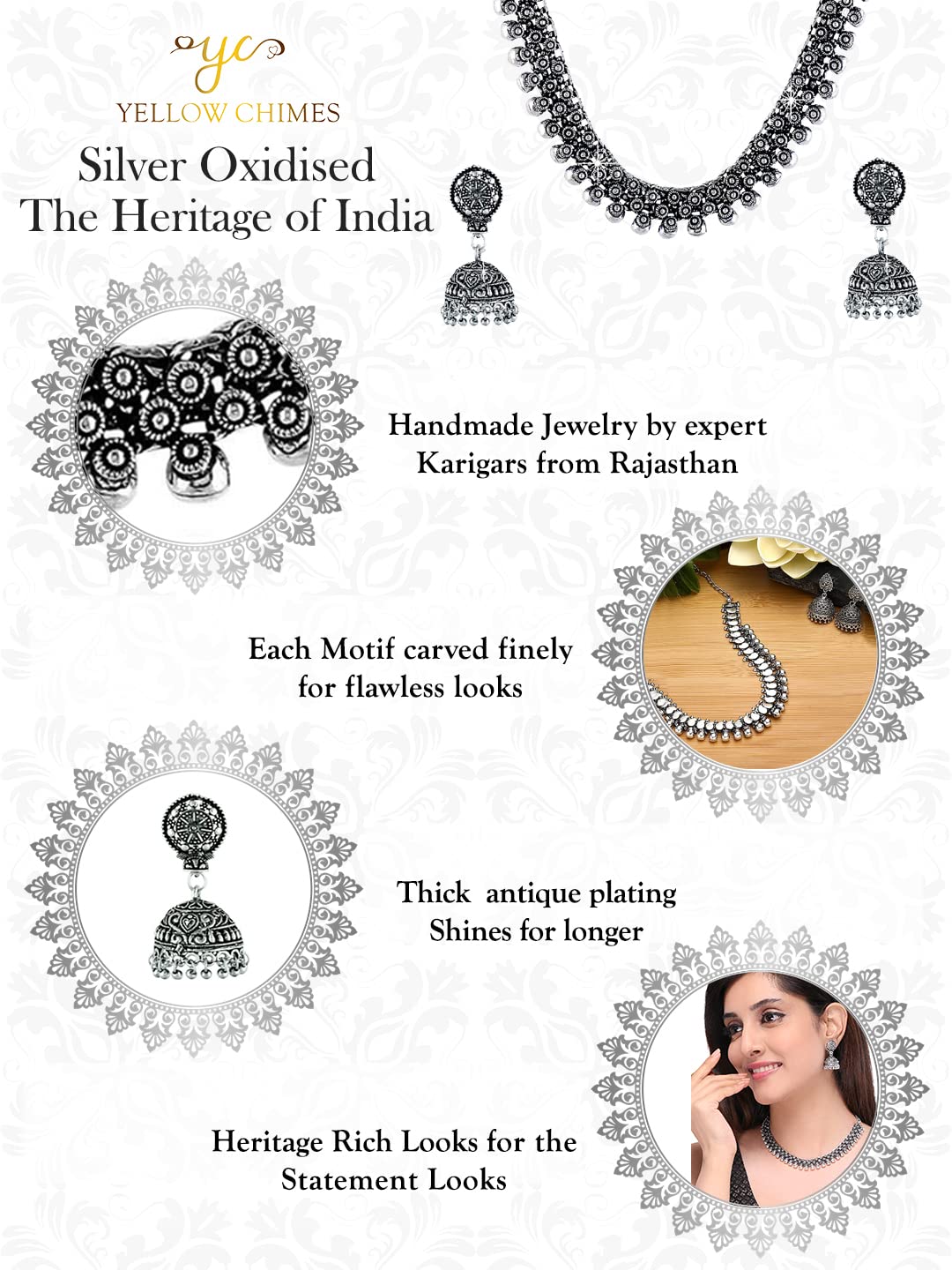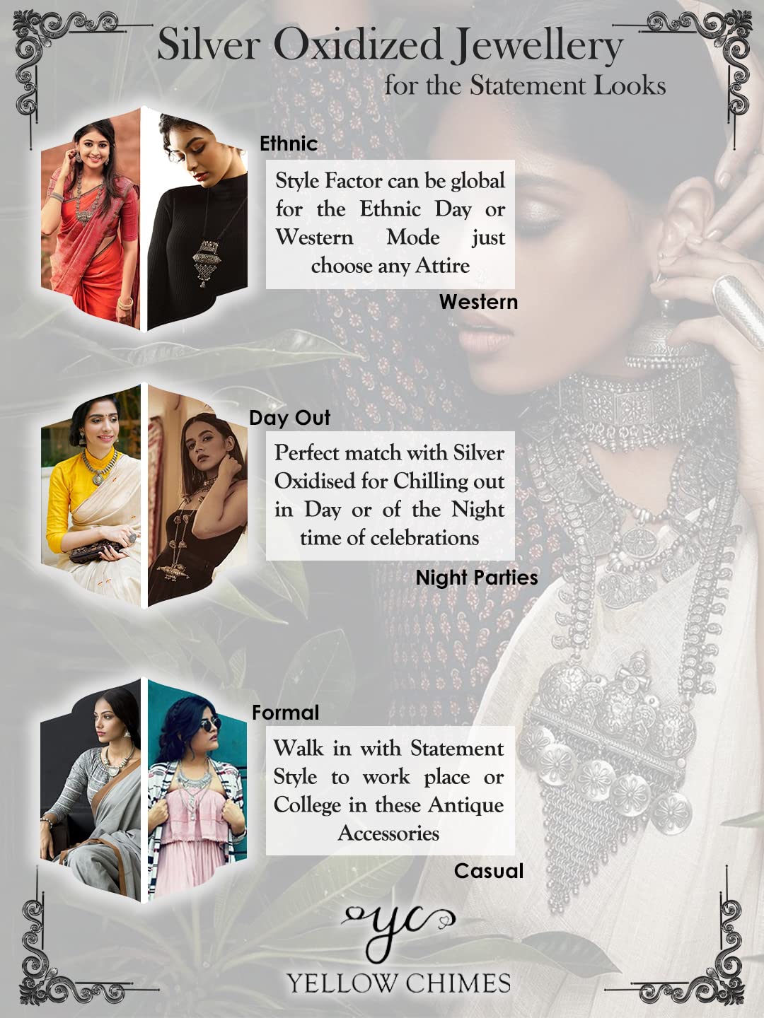 Yellow Chimes Traditional Silver Oxidised Kohlapuri Jewellery Choker Necklace Set for Women
