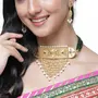 ZENEME Gold-Plated Pink & White Kundan Studded & Beaded Choker Meenakari Necklace For Women and Girls