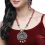 ZENEME Oxidised Silver-Plated Stone Studded & Beaded Antique Matte God Krishna Jewellery Set For Girls and Women
