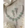 HomeFashionNecklaceZENEME Women's Rhodium-Plated Silver Toned Flower Shaped American Diamond Studded Necklace With Earring Jewellery Set Free Size Lime Green