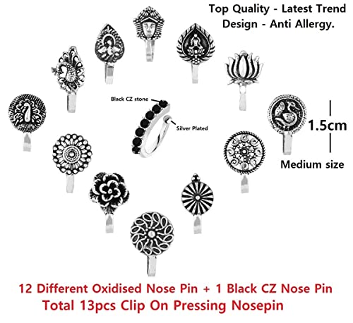 VAMA Oxidised Jewellery Nose Pin Without Piercing Press On Oxidized German Silver Nose Ring Stud For Women