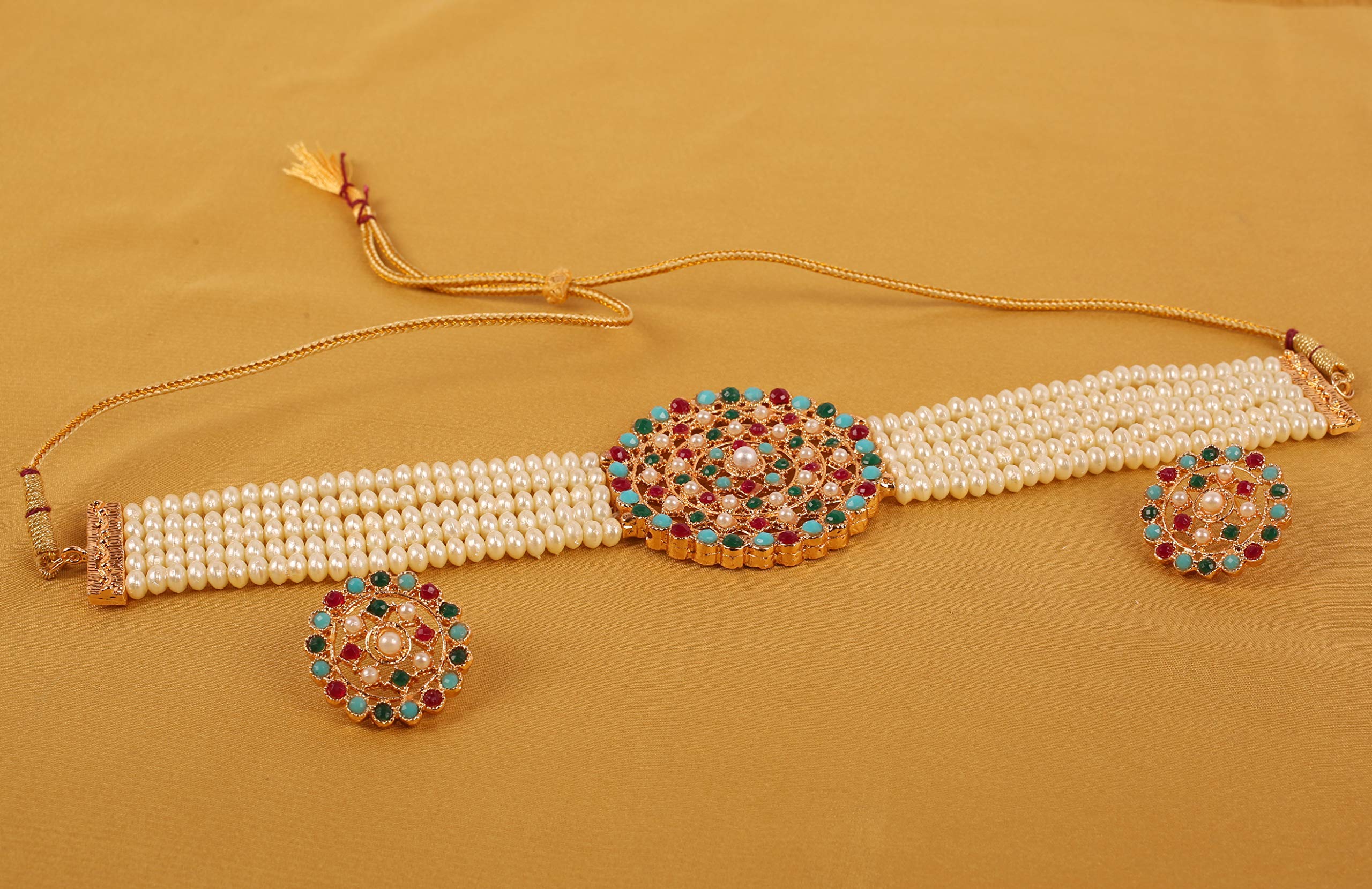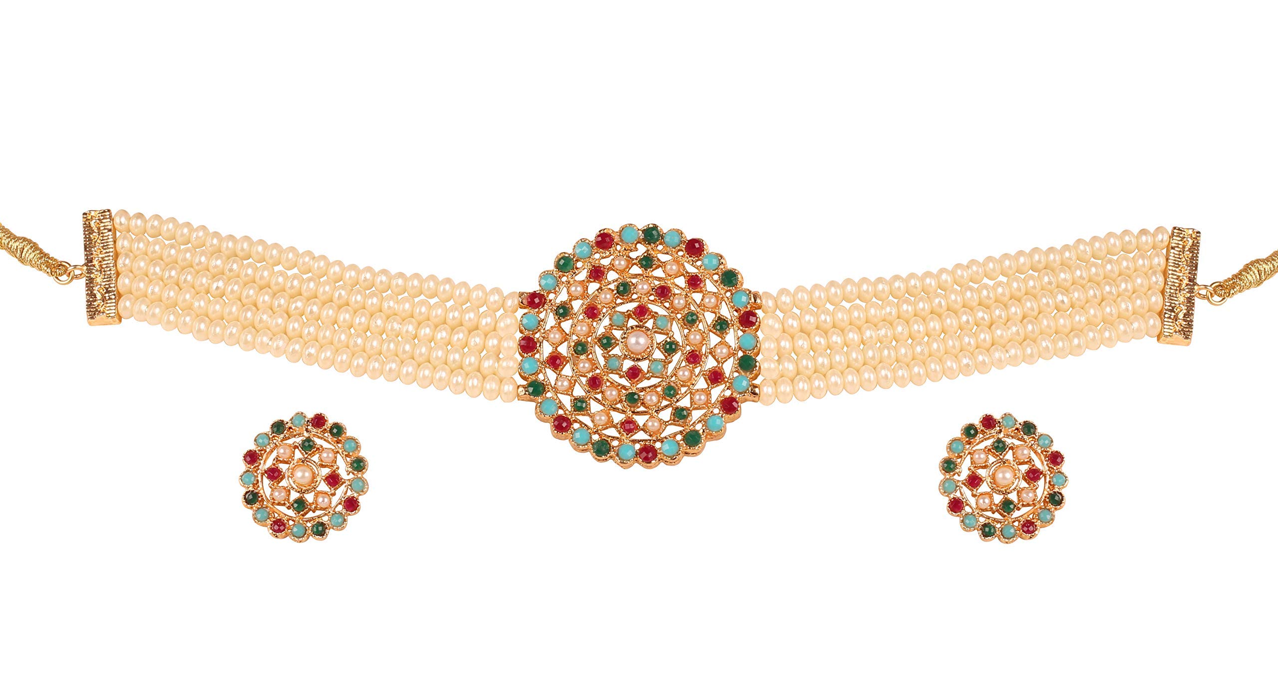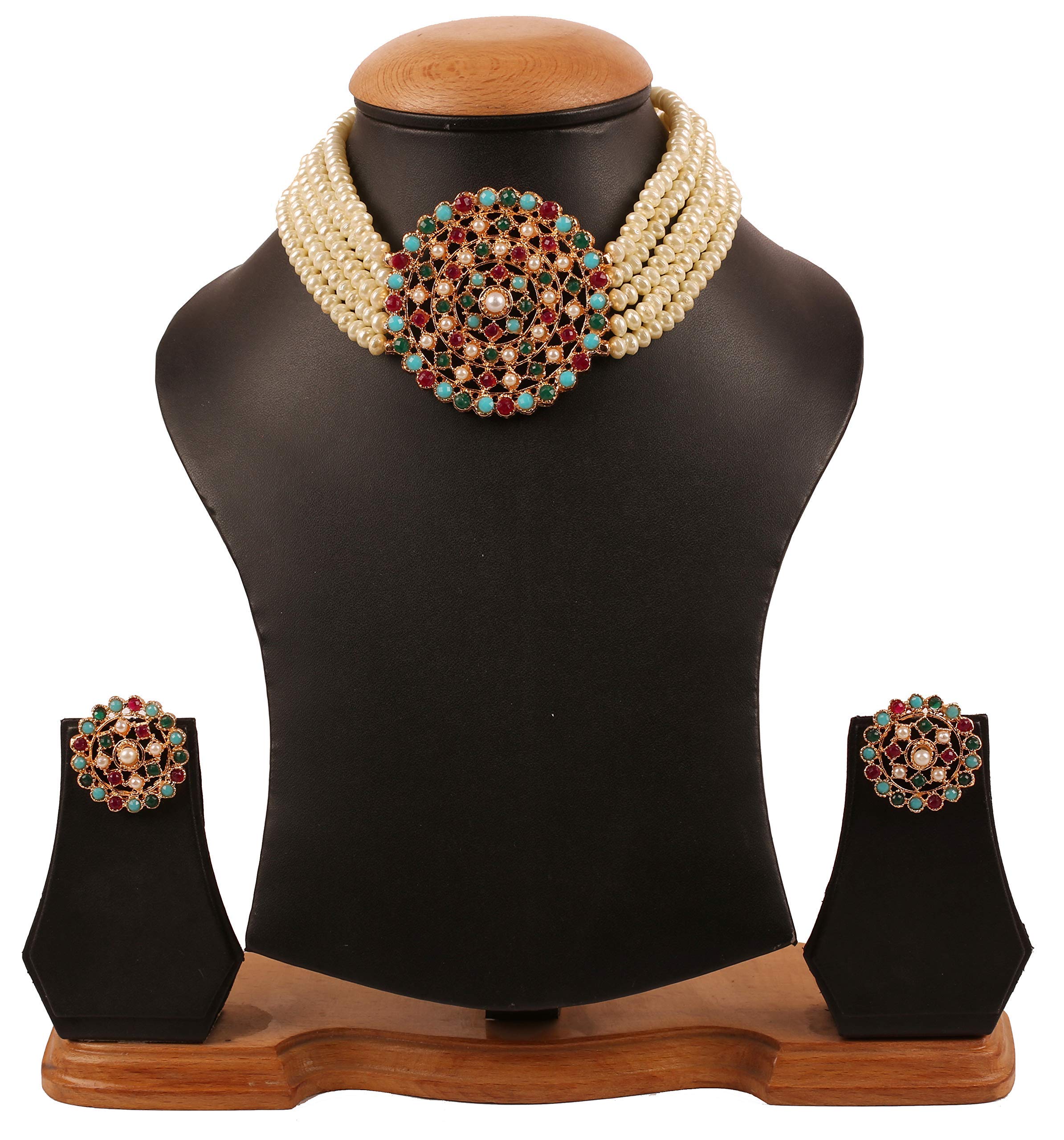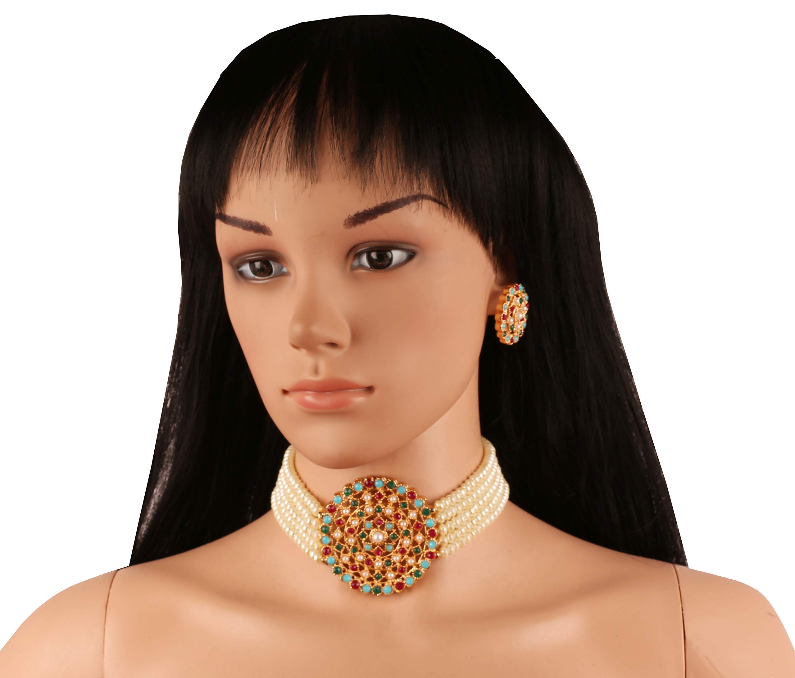 Touchstone "Padmavati Collection Indian Bollywood Traditional Rhinestones Grand Designer Jewelry Choker Necklace Set For Women.