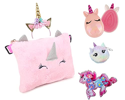 Aashiya Soft Plush Unicorn Bag & Hairband unicorn hair comb Hair clip box+coin fur purse for girls