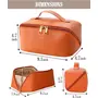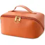 HomeFashionBagsBATFIELD Cosmetic Bag for Women, Litchi PU Leather Makeup Pouch for Women, Large Capacity Cosmetic Travel Bag, Portable Makeup Kit Storage Bag with Handle and Divider, Orange, Travel Accessories