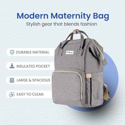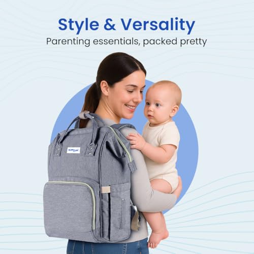 Bumtum Baby Diaper Bag for Mothers | Spacious Waterproof Backpack with Multiple Pockets to Easily Organise Baby Essentials Diaper Backpack Grey