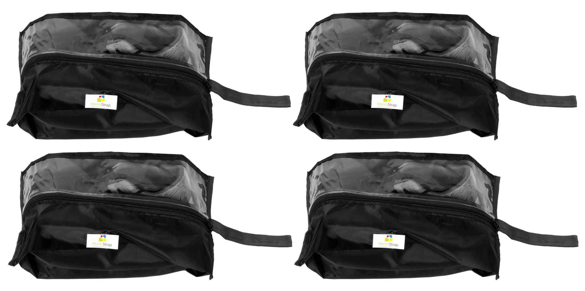 Homestrap 4 Piece Parachute Shoe Bag Transparent Top with Zipper Large Black