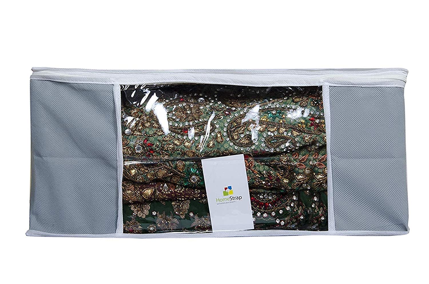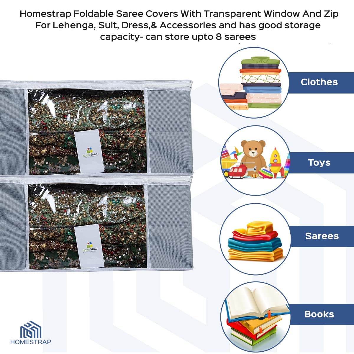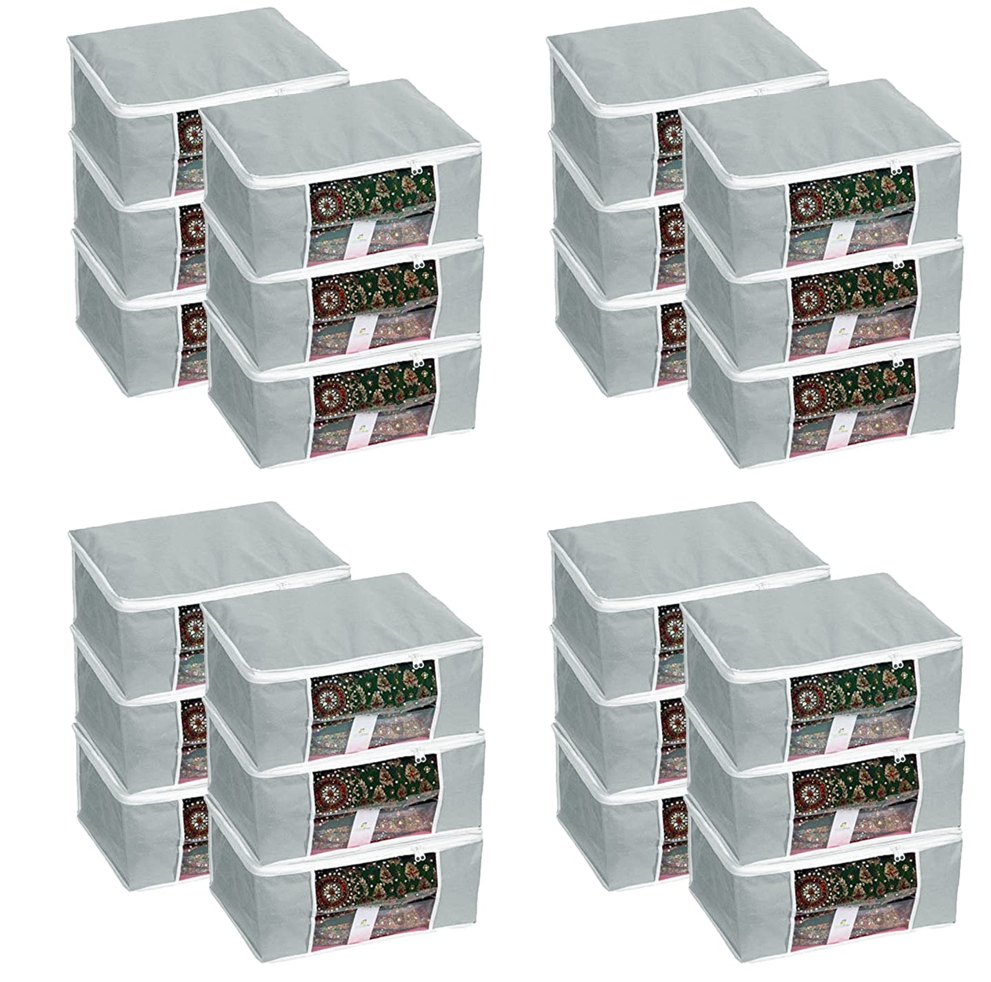 HomeFashionBagsHomestrap set of 24 Foldable Saree Covers/Clothes Storage Bag/Wardrobe Organizer With Transparent Window And Zip For Lehenga Suit Dress& Accessories (Grey)(Shark Tank Product))