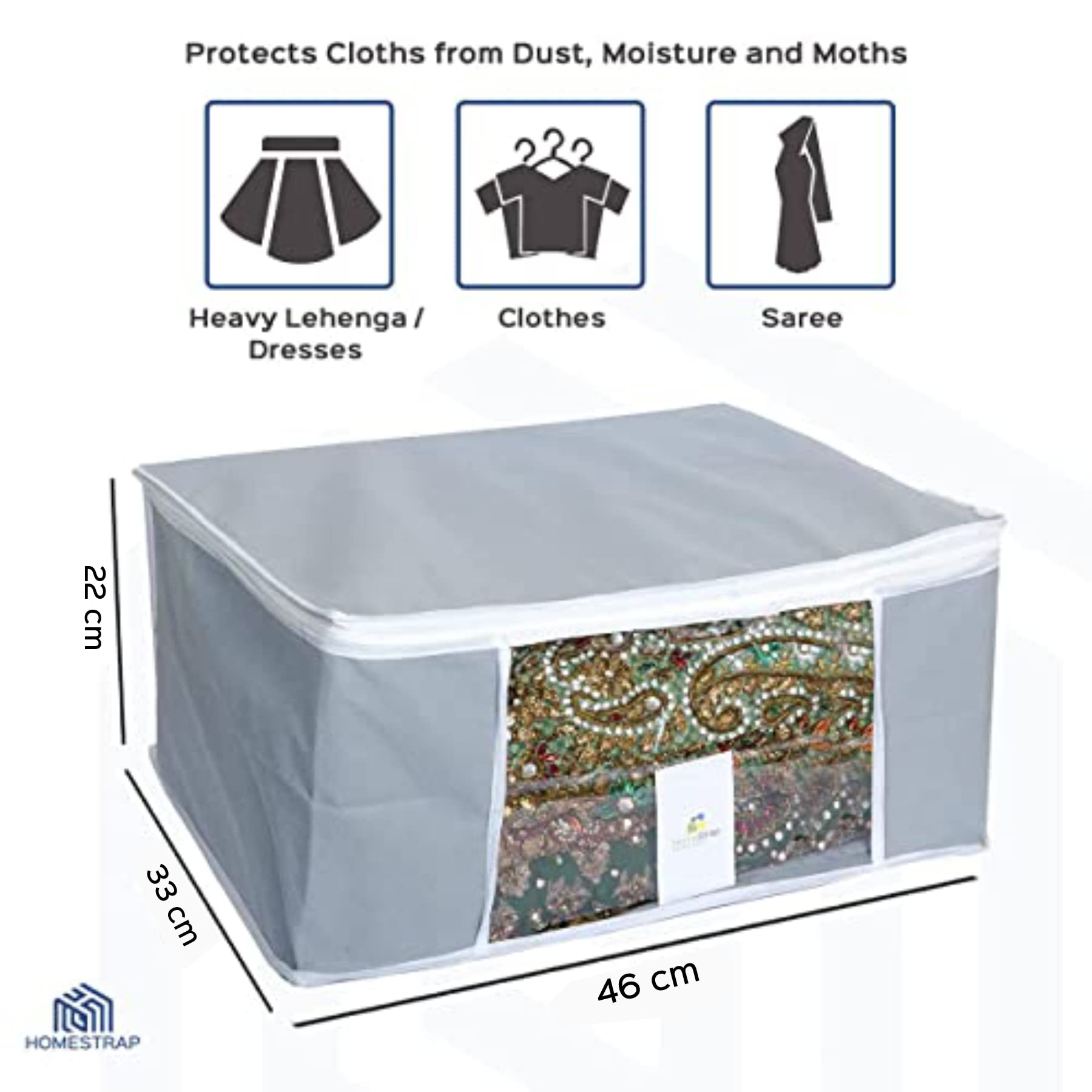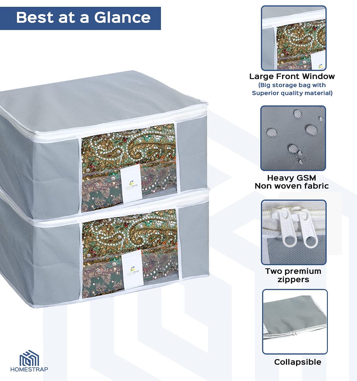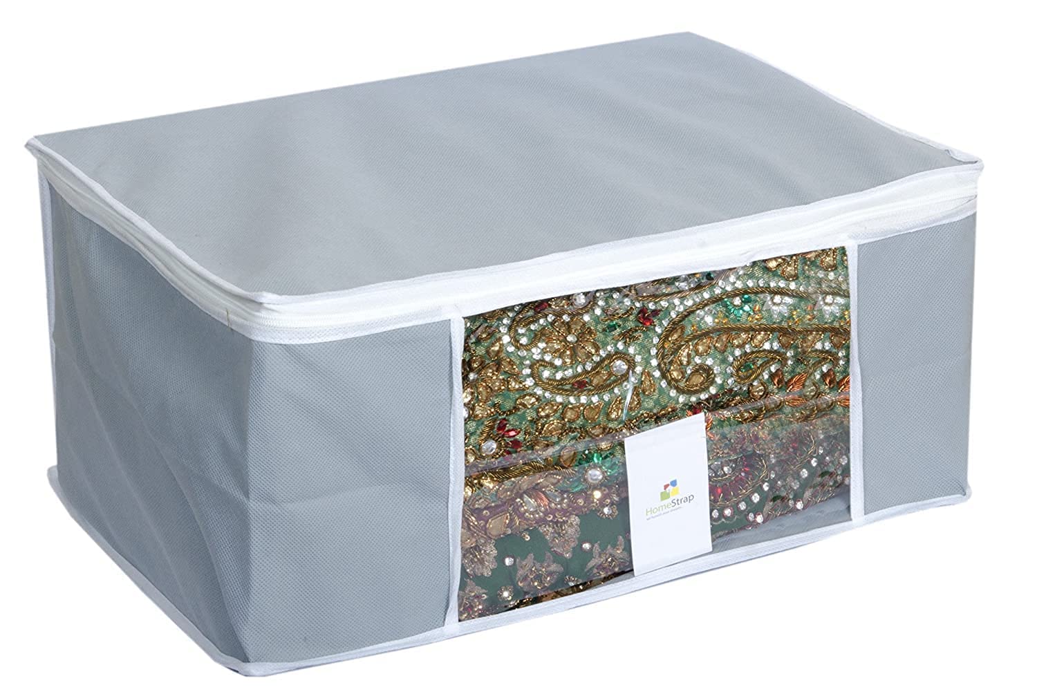 HomeFashionBagsHomestrap set of 24 Foldable Saree Covers/Clothes Storage Bag/Wardrobe Organizer With Transparent Window And Zip For Lehenga Suit Dress& Accessories (Grey)(Shark Tank Product))