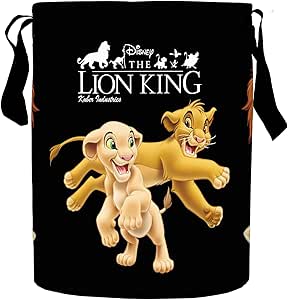 HomeFashionBagsKuber Industries Disney Laundry Bag/Bin|Water Proof Canvas Material & 3D Disney The Lion King Print|Toy Storage & Cloth Organizer with Lid & Handles|Size 37 x 37 x 46 Cm, Capicity 45 L (Black)