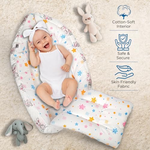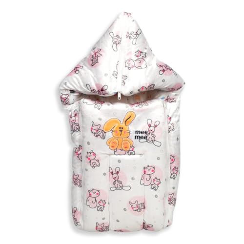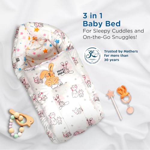 HomeFashionBagsMee Mee 3 in 1 Baby Bed, Sleeping Bag & Carry Nest, Rabbit Embroidery, Shearing Finish & Cotton Soft from Inside, Baby Bedding for New Born & Infant, Machine Washable & Portable Bassinet, 0M+, Pink