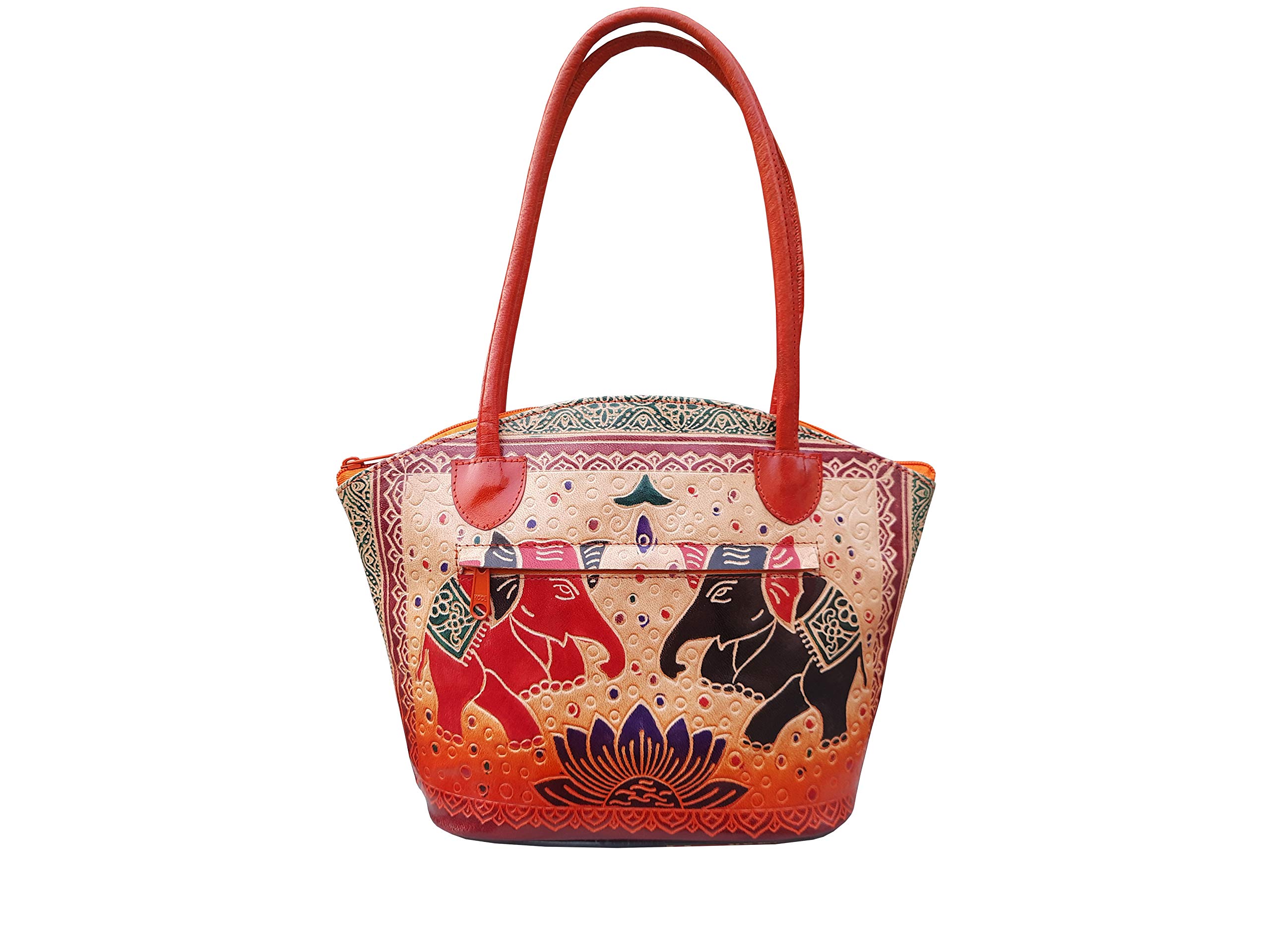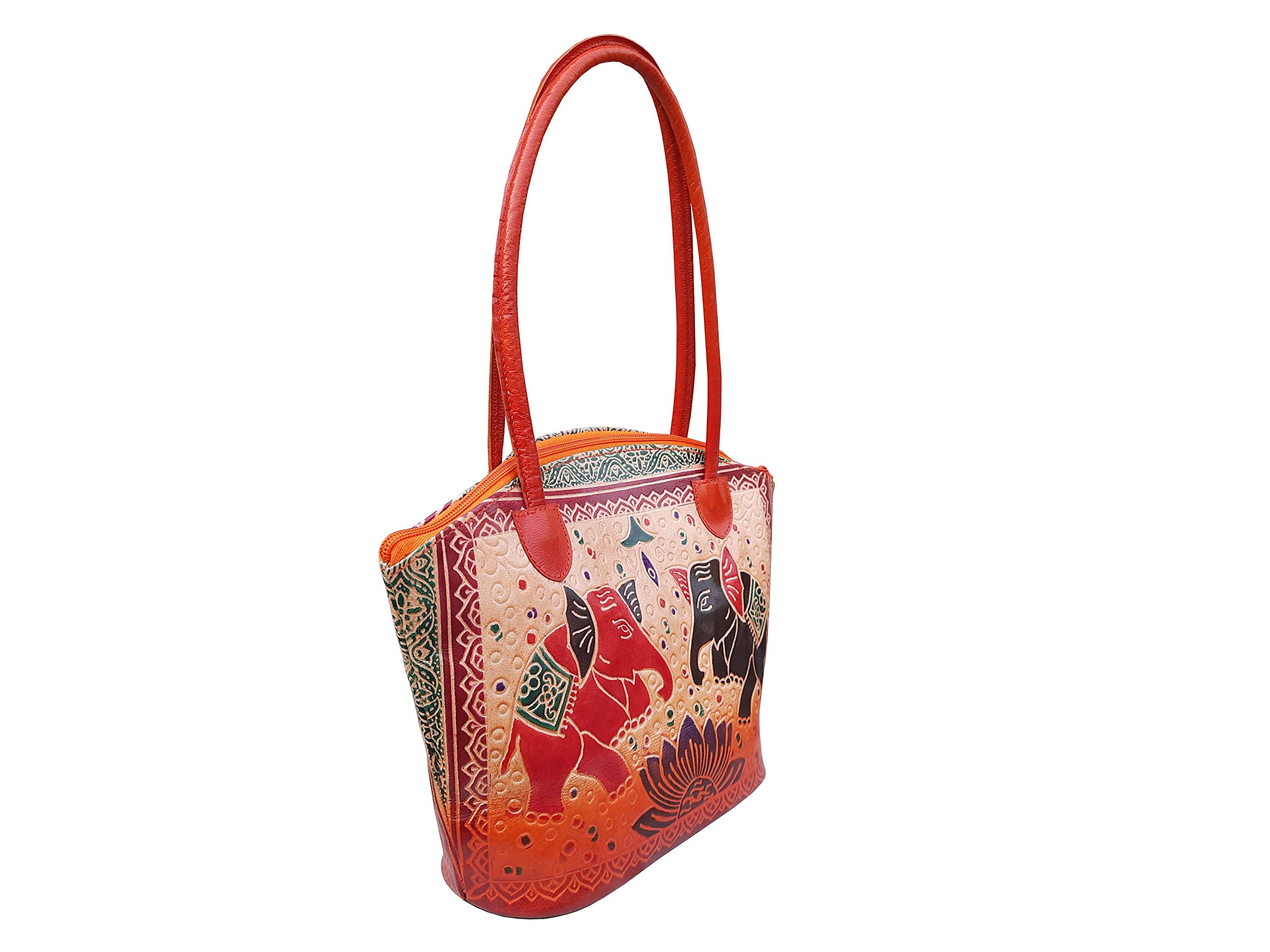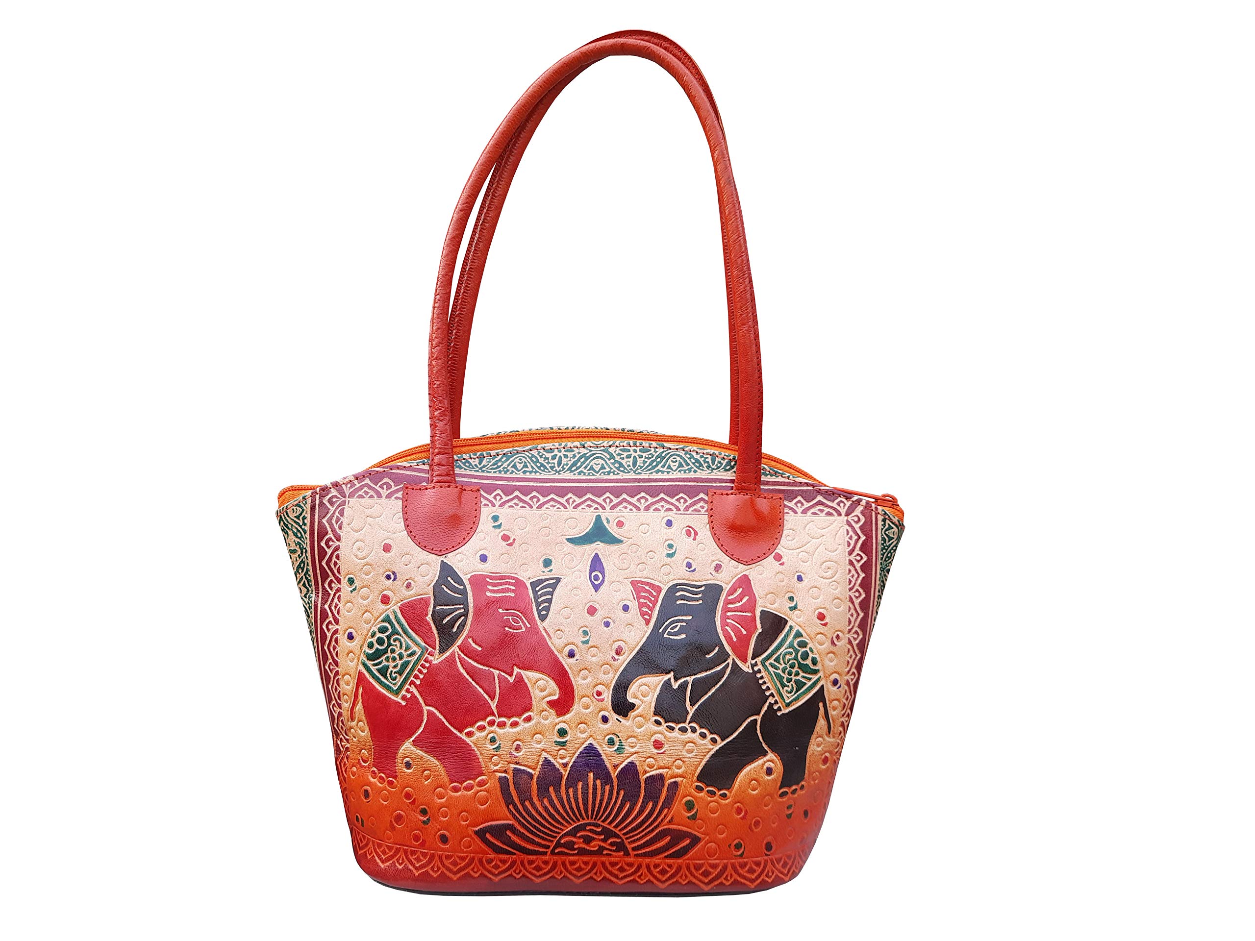 HomeFashionBagsSHANTINIKETAN EMBOSSED LEATHER PRODUCTS Genuine Leather Shantiniketan Traditional Elephant Printed Hand Tooled Embossed Purse Shoulder Bag for Women and Girls