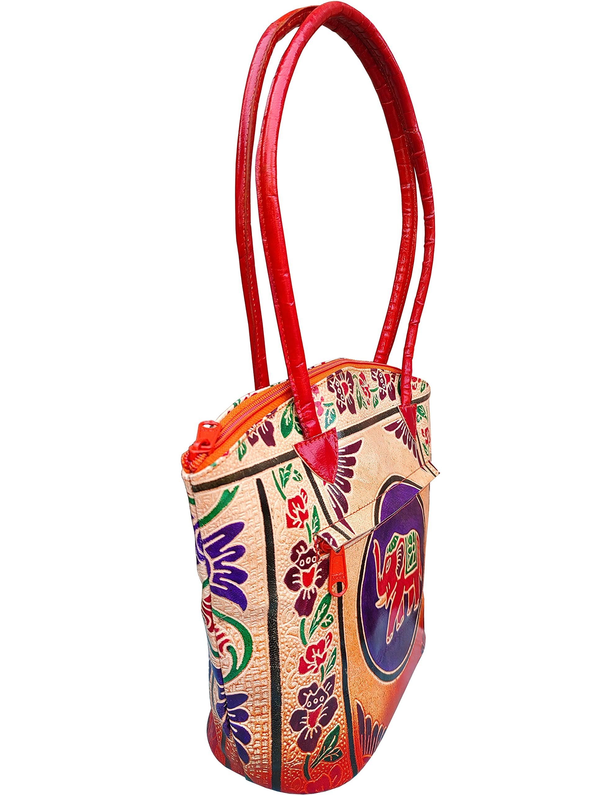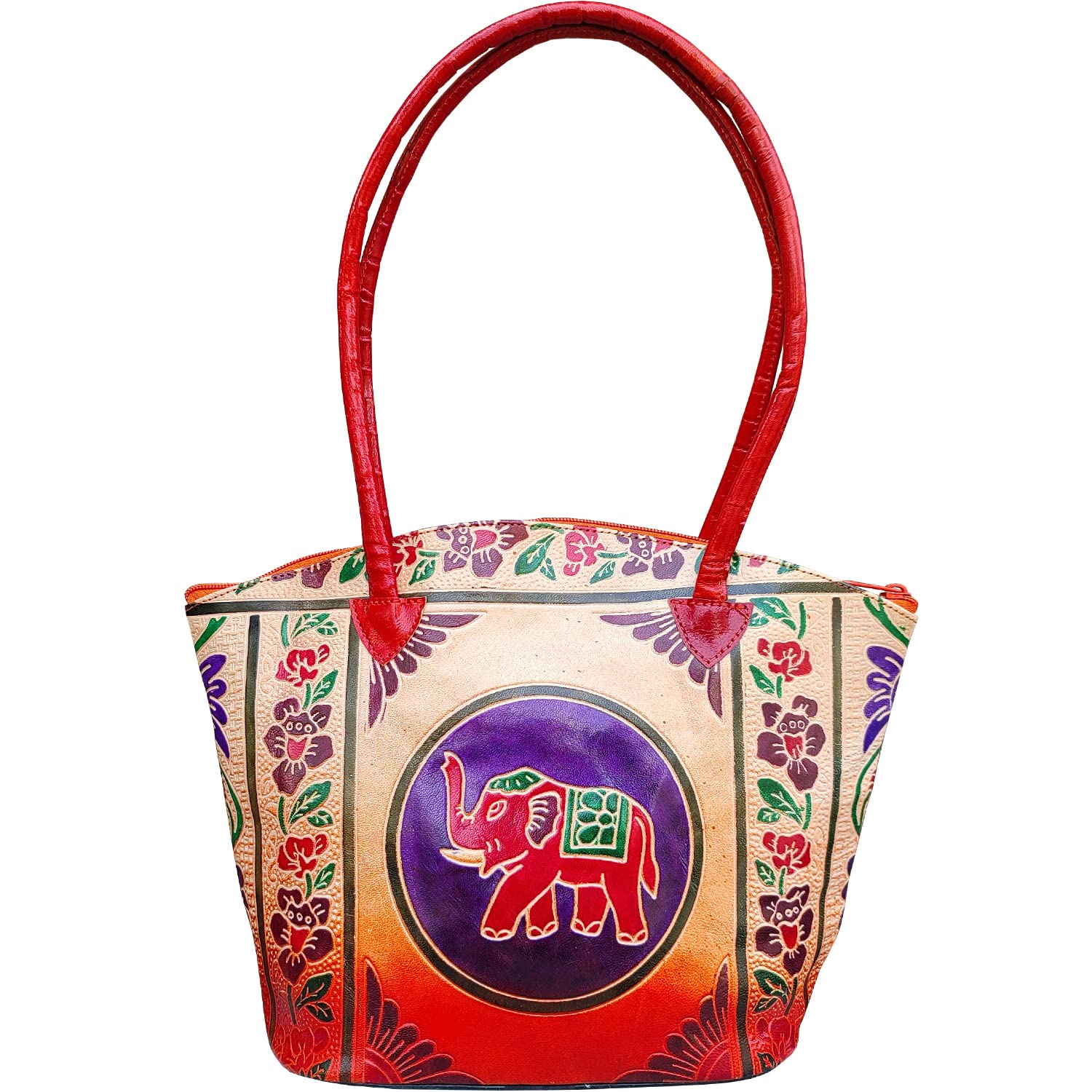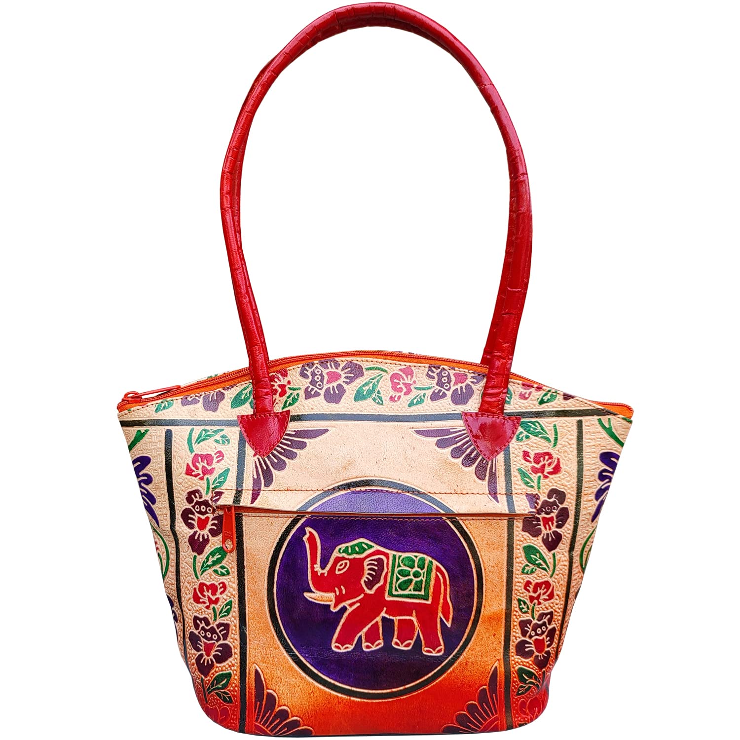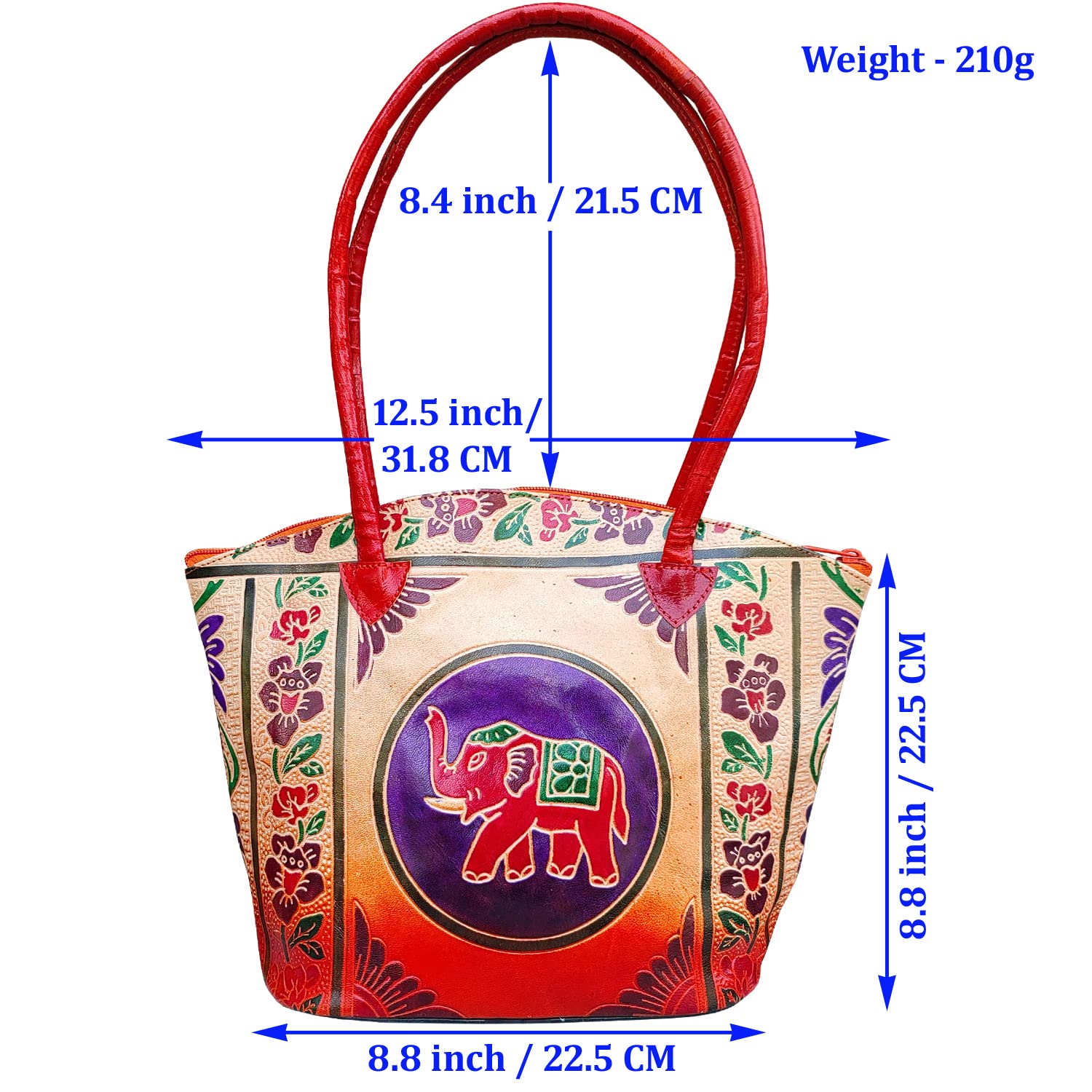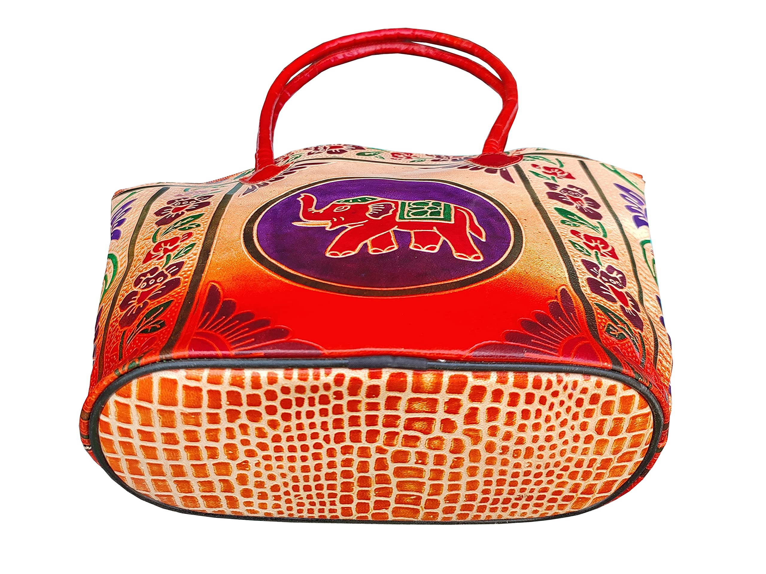 SHANTINIKETAN EMBOSSED LEATHER PRODUCTS Shantiniketan Genuine Leather Traditional Handbag Purse for Women (Free 1 Pouch) (ALH_540) (Elephant)
