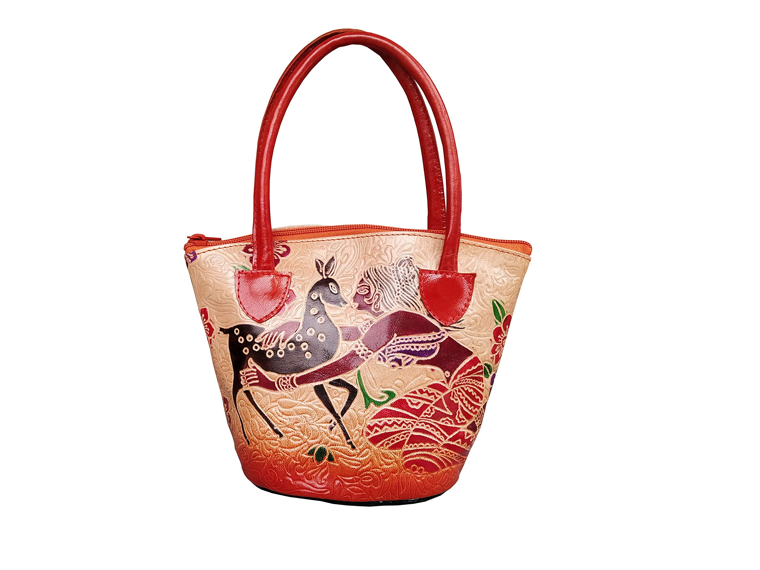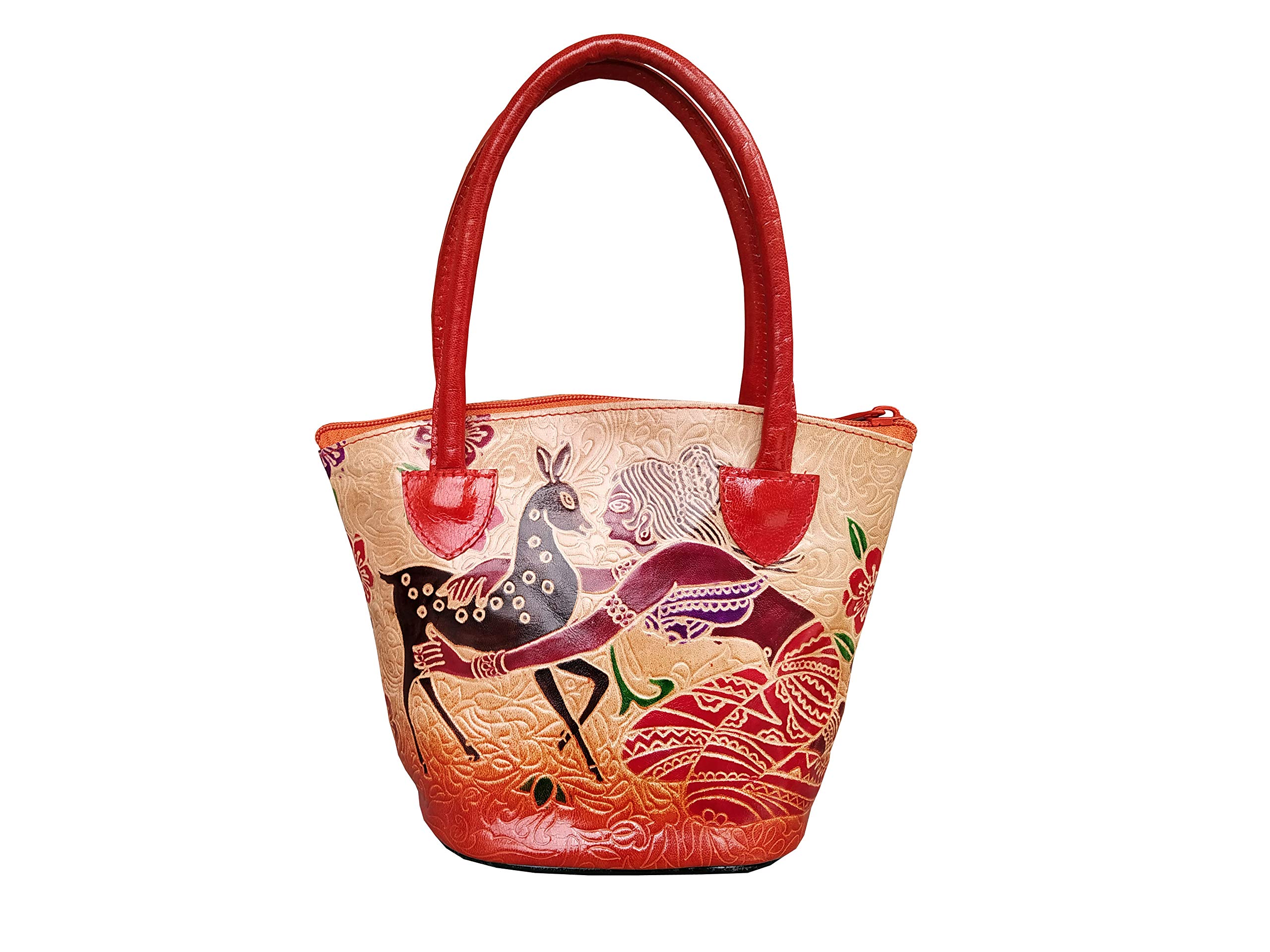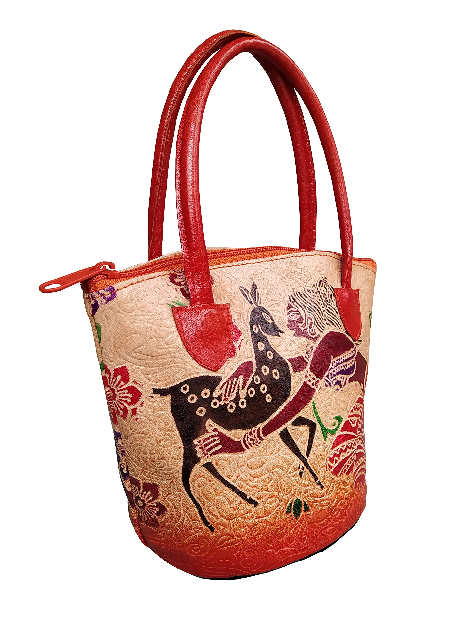 SHANTINIKETAN EMBOSSED LEATHER PRODUCTS Shantiniketan Pure Leather Block Design Womens Purse Handbag Shakuntala Loving Deer Printed
