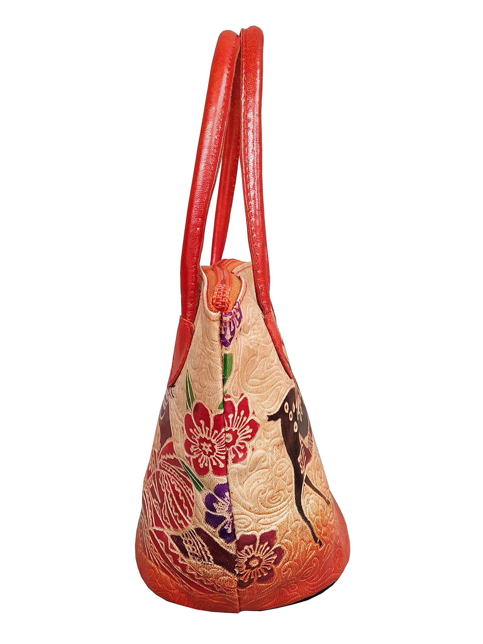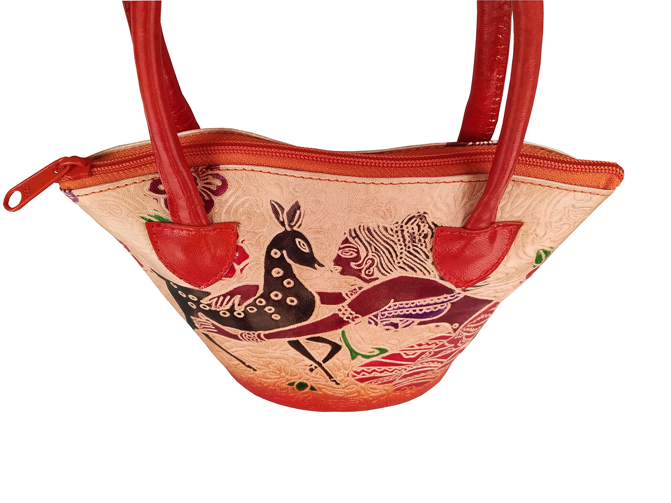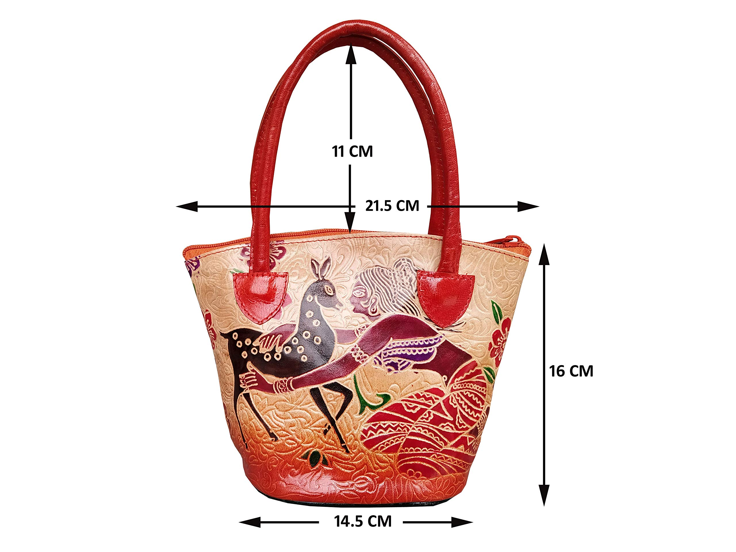 SHANTINIKETAN EMBOSSED LEATHER PRODUCTS Shantiniketan Pure Leather Block Design Womens Purse Handbag Shakuntala Loving Deer Printed