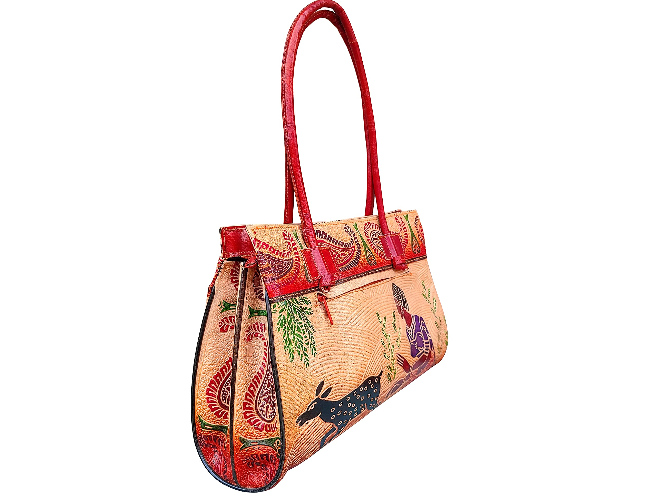 Handcrafted from 100% Genuine Leather a Beautiful Ethnic Art of West Bengal. A Definite Eye-Catcher in any Event and Carries your Essentials Easily.