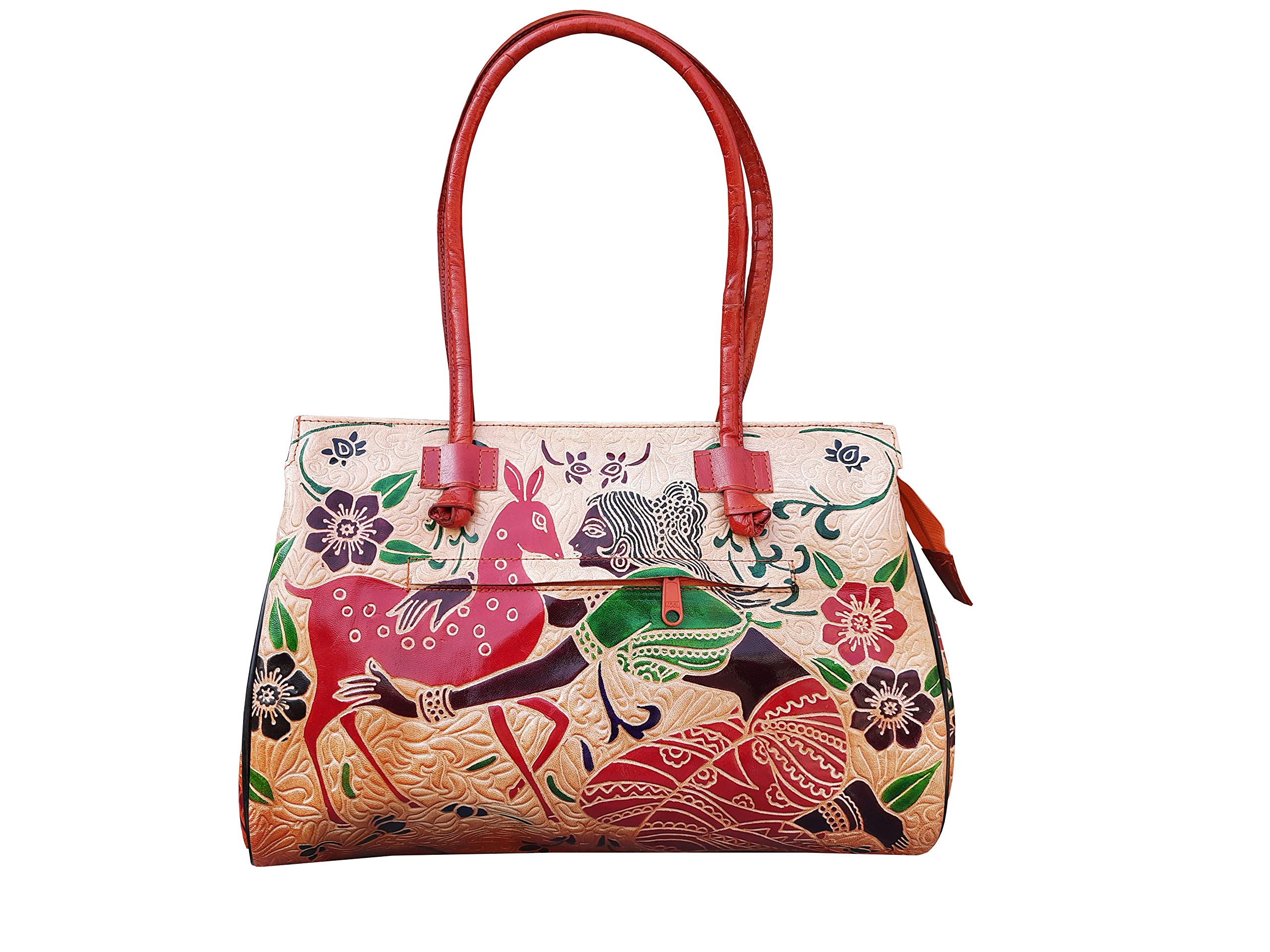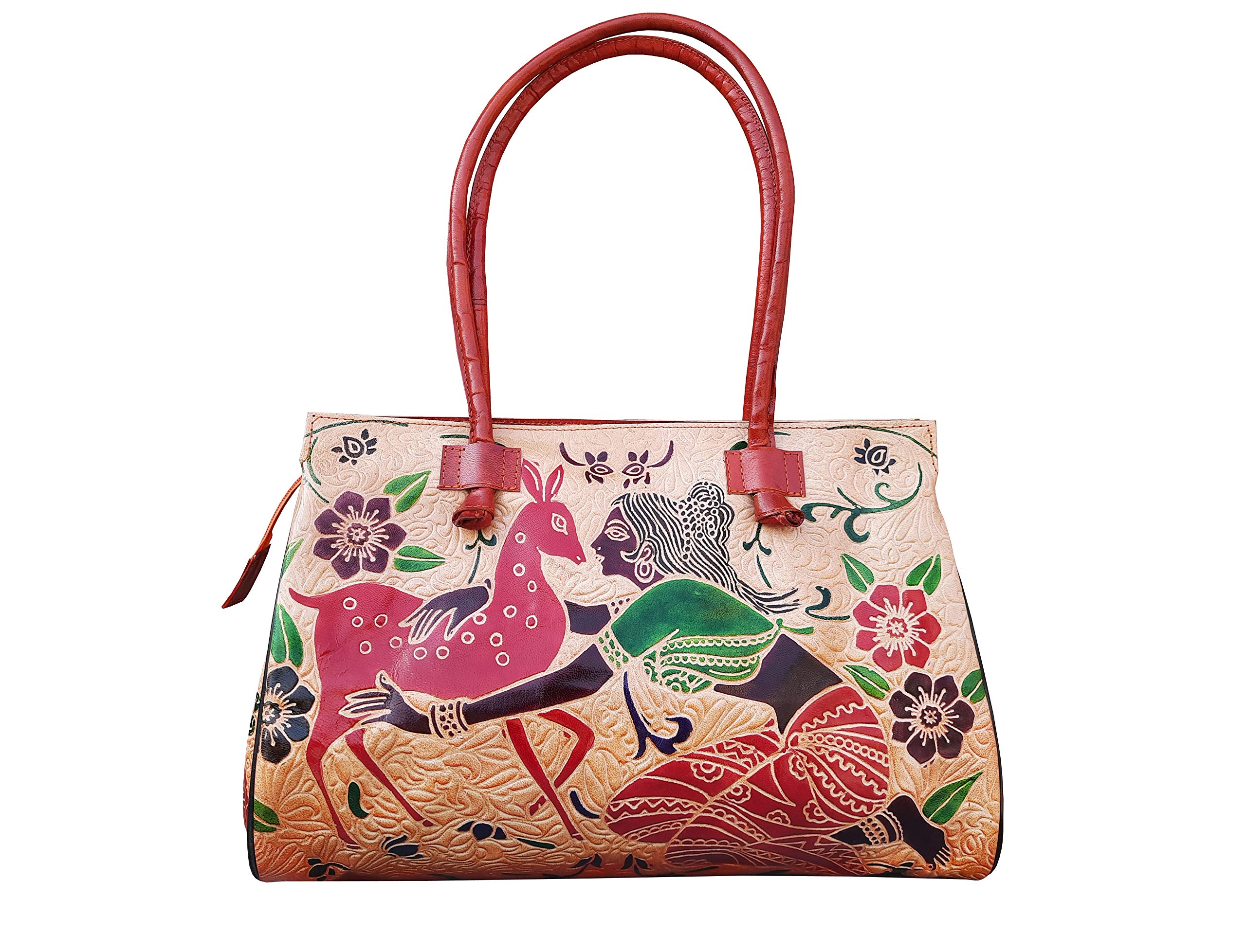 SHANTINIKETAN EMBOSSED LEATHER PRODUCTS Shantiniketan Pure Leather Designer Ethnic Shoulder Bag for Women